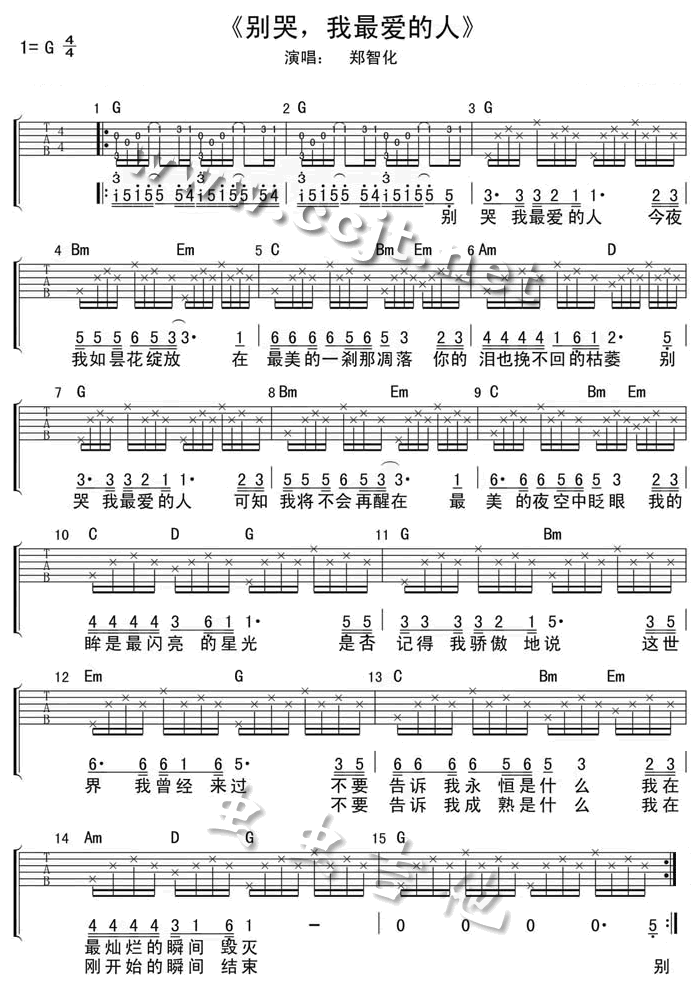 别哭我最爱的人吉他谱 - 吉他弹唱谱