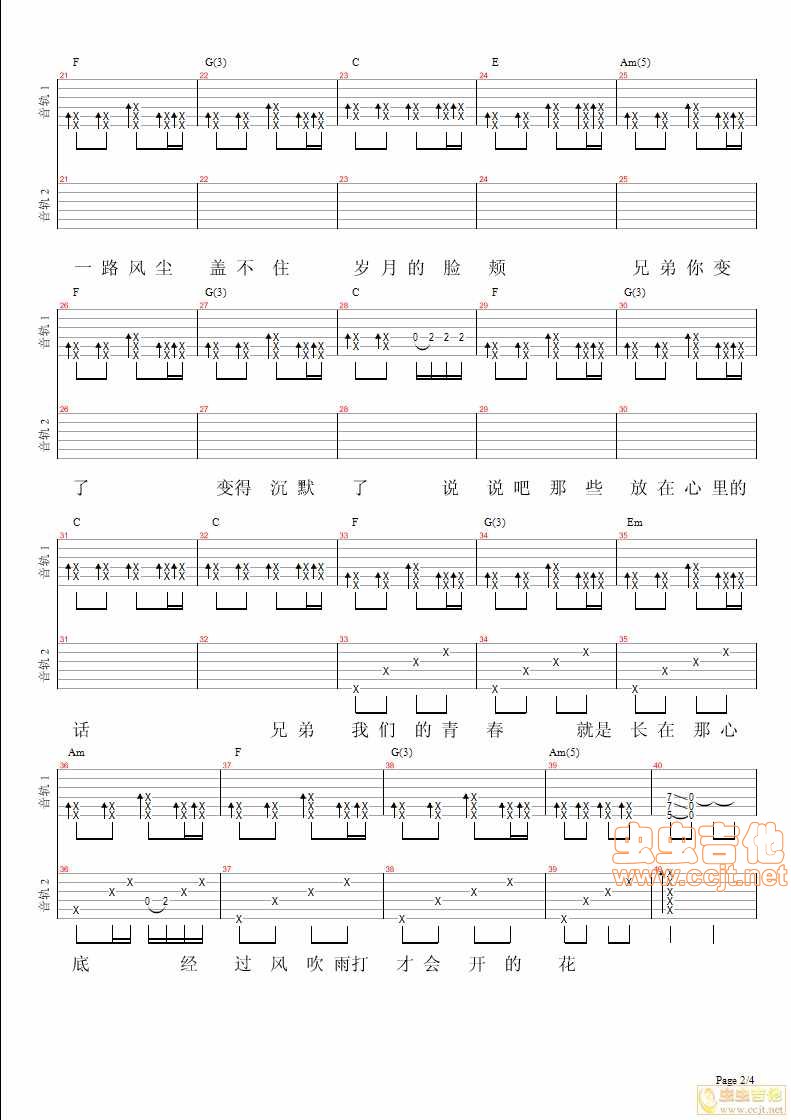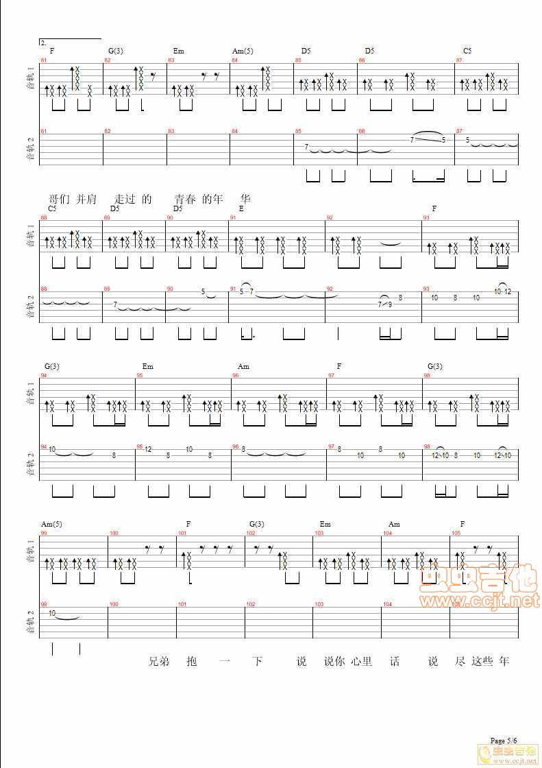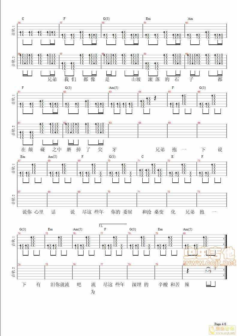 兄弟抱一下6 庞龙 李雪吉他音乐教室编配吉他谱 - 兄弟抱一下6 - 吉他弹唱谱