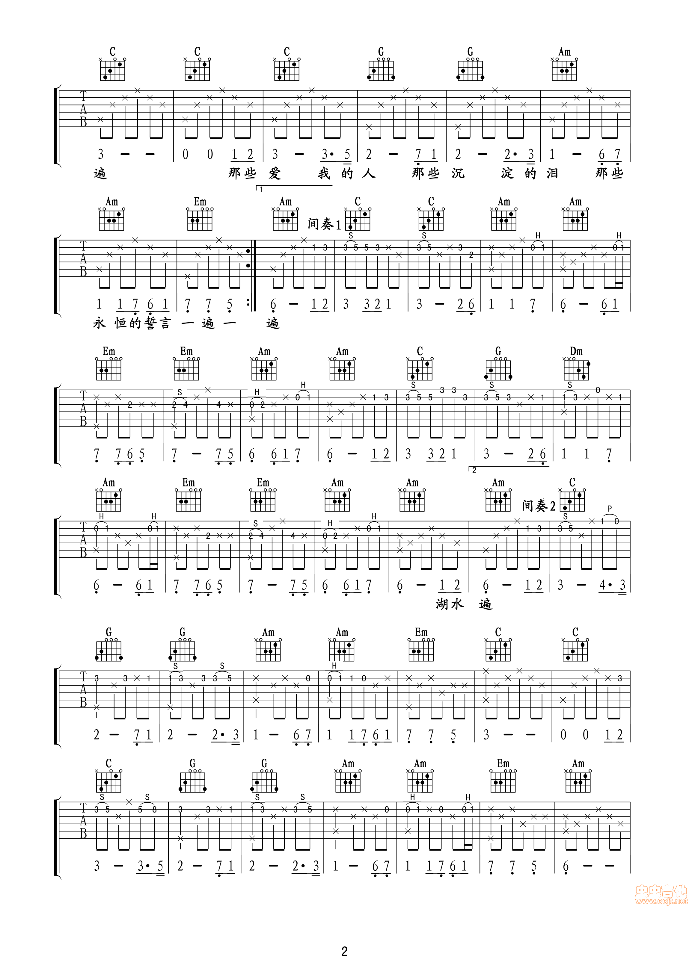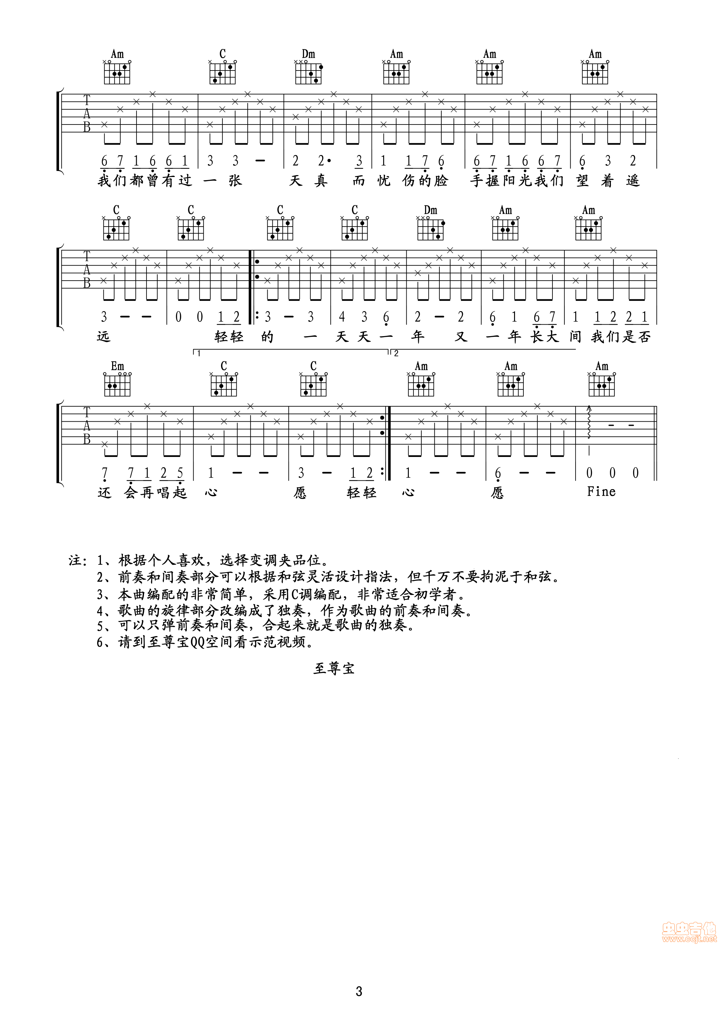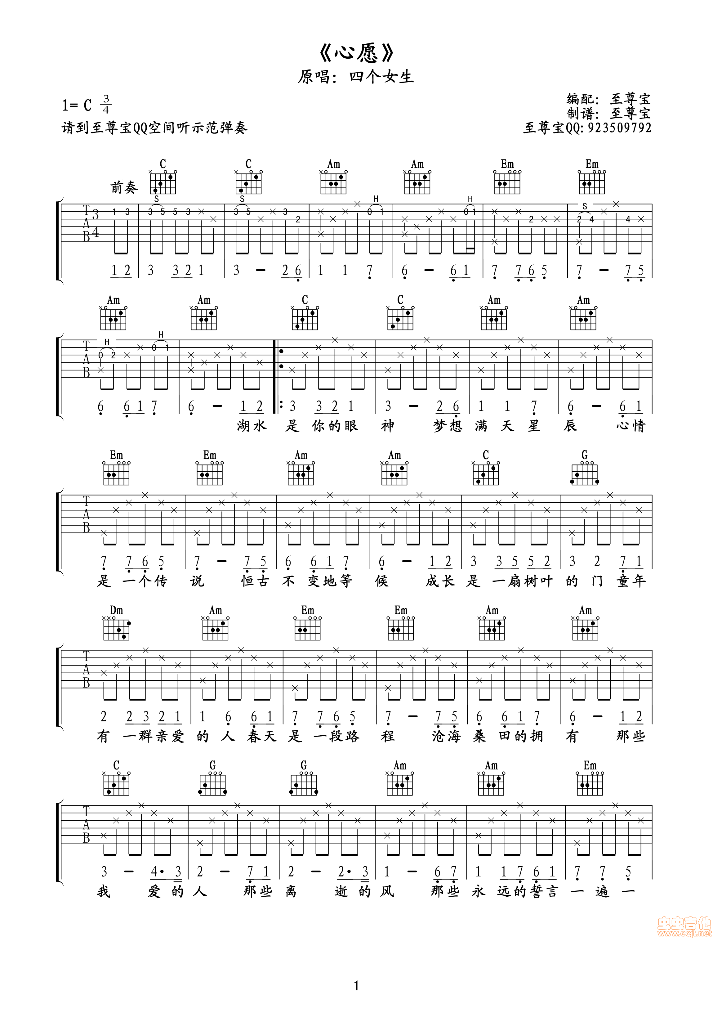 曲谱介绍: 《心愿》吉他弹唱谱,共有3张高清图谱。