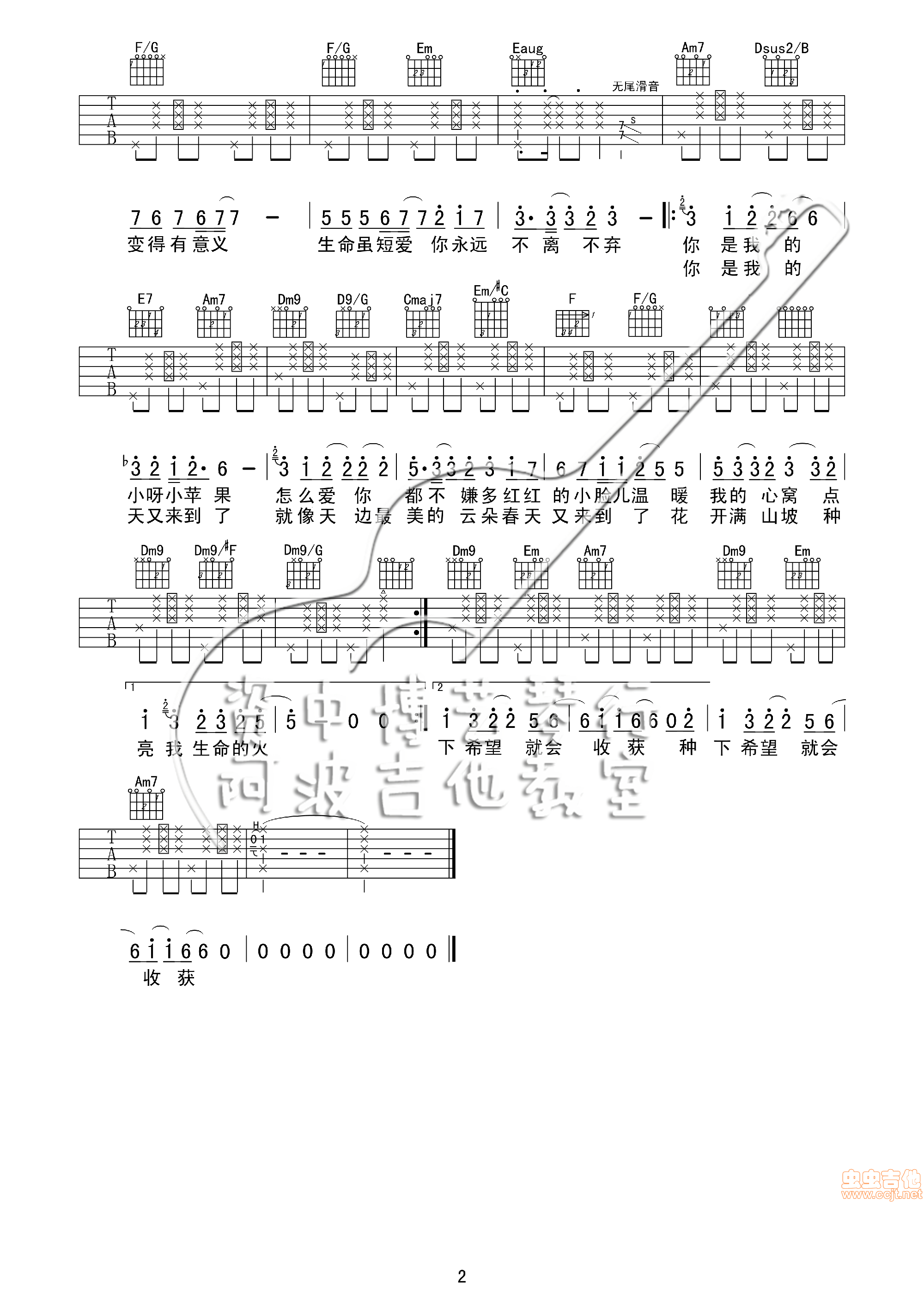 曲谱介绍: 小苹果《小苹果徐菲版(修改)》吉他弹唱谱,共有2张高清图谱,免翻页排版设计。