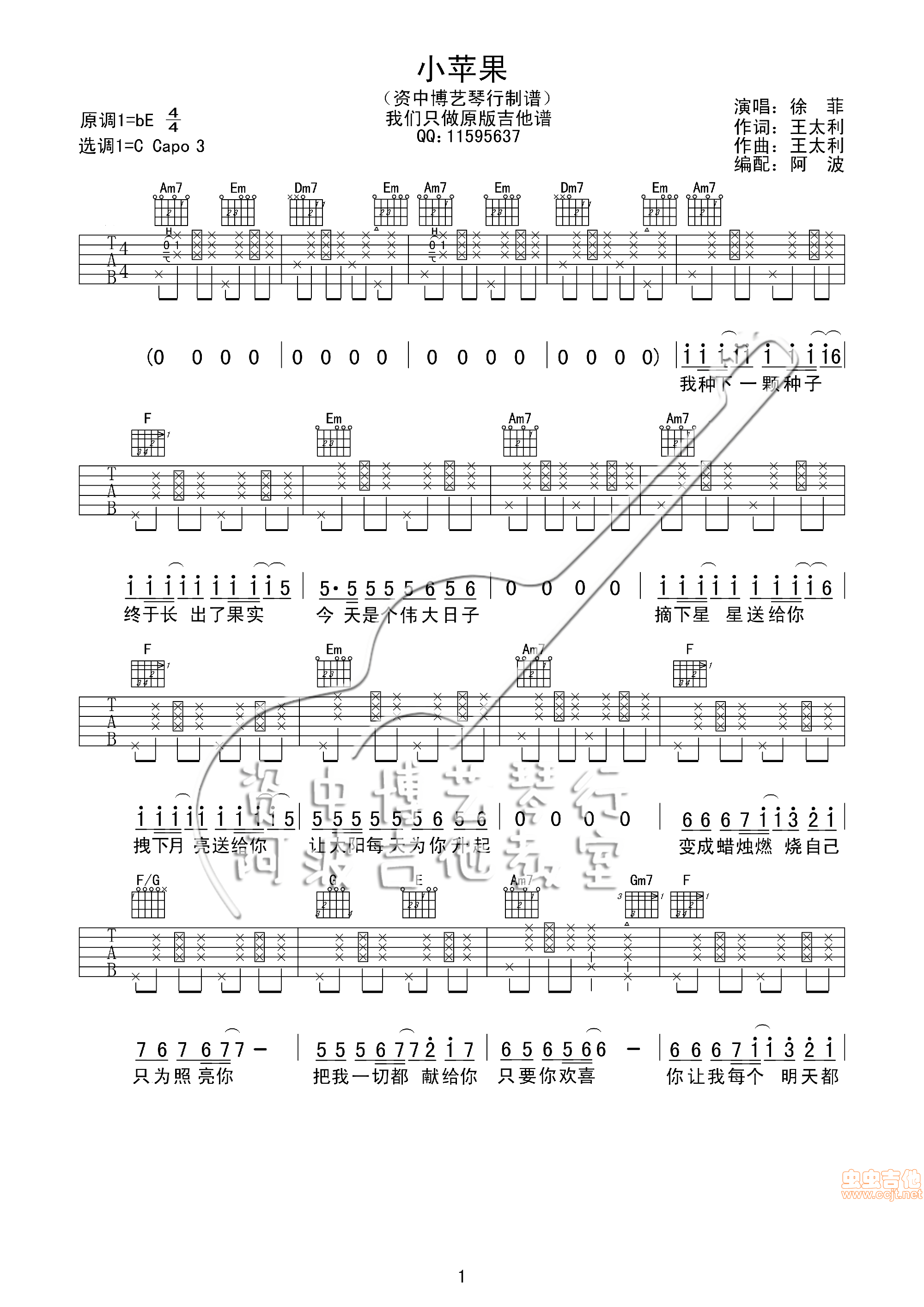 小苹果 徐菲版(修改)吉他谱 - 小苹果 - 吉他弹唱谱