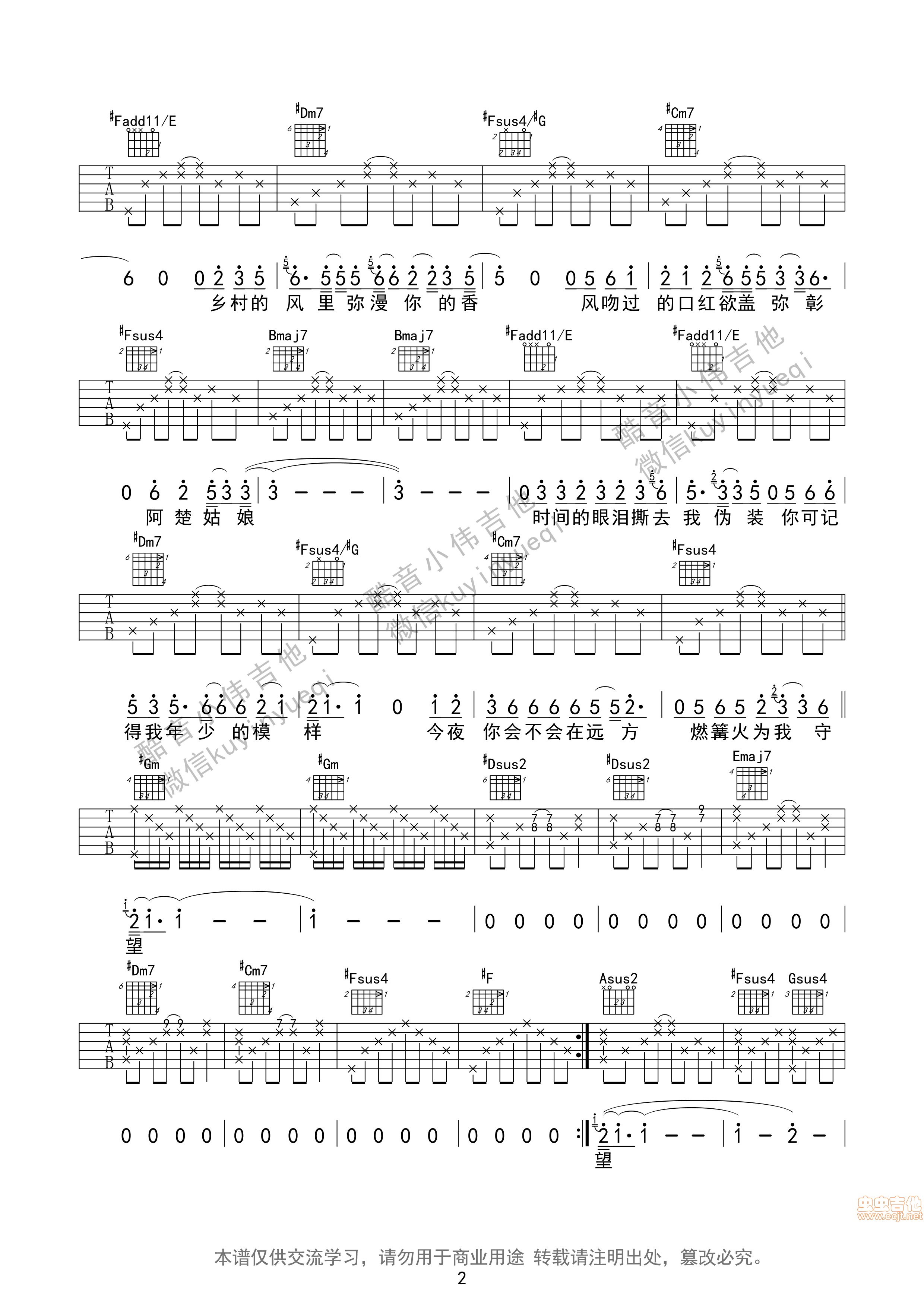当前位置:琴谱网>吉他弹唱>阿楚姑娘