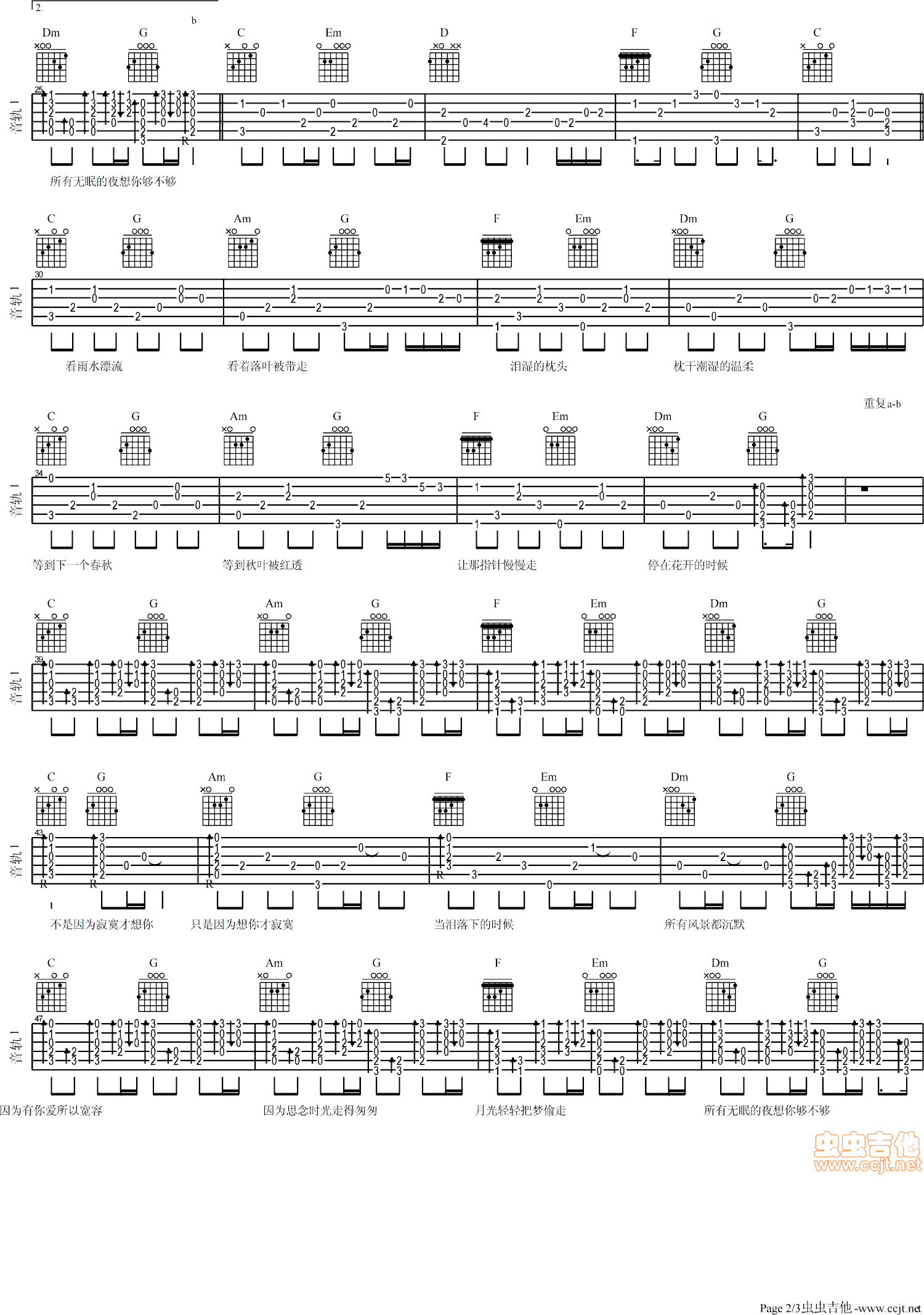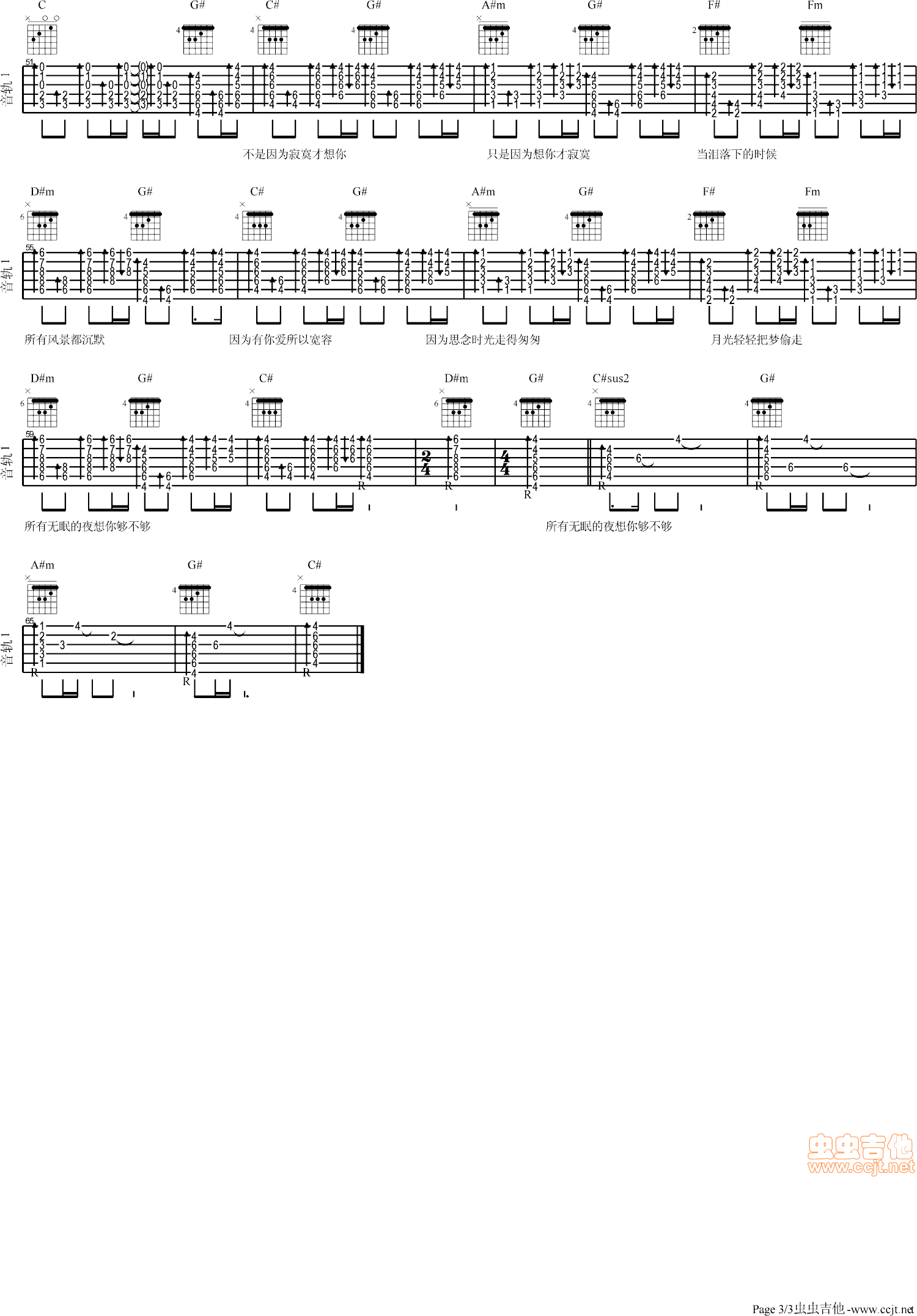 曲谱介绍: 《不是因为寂寞才想你》吉他弹唱谱,共有3张高清图谱。