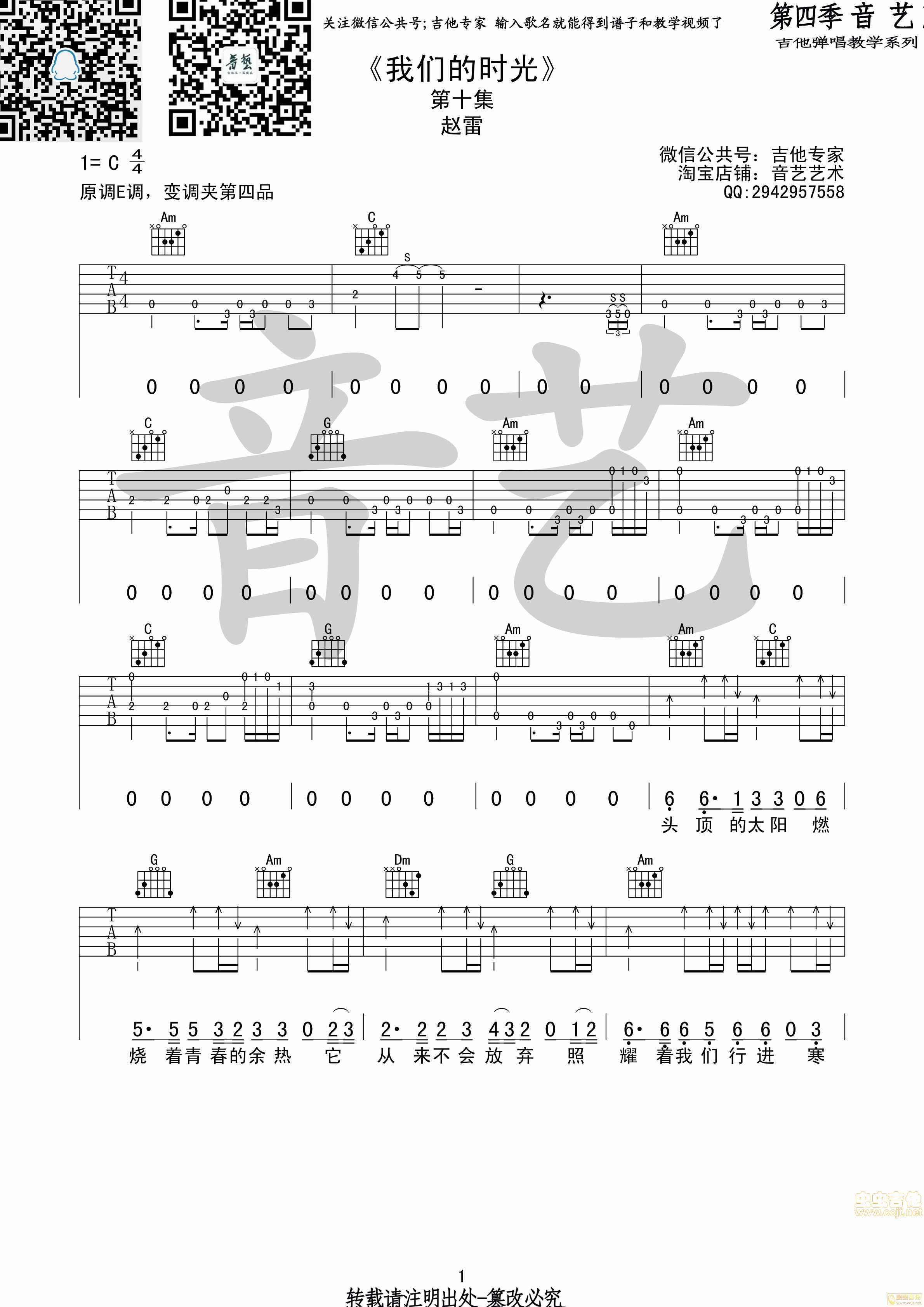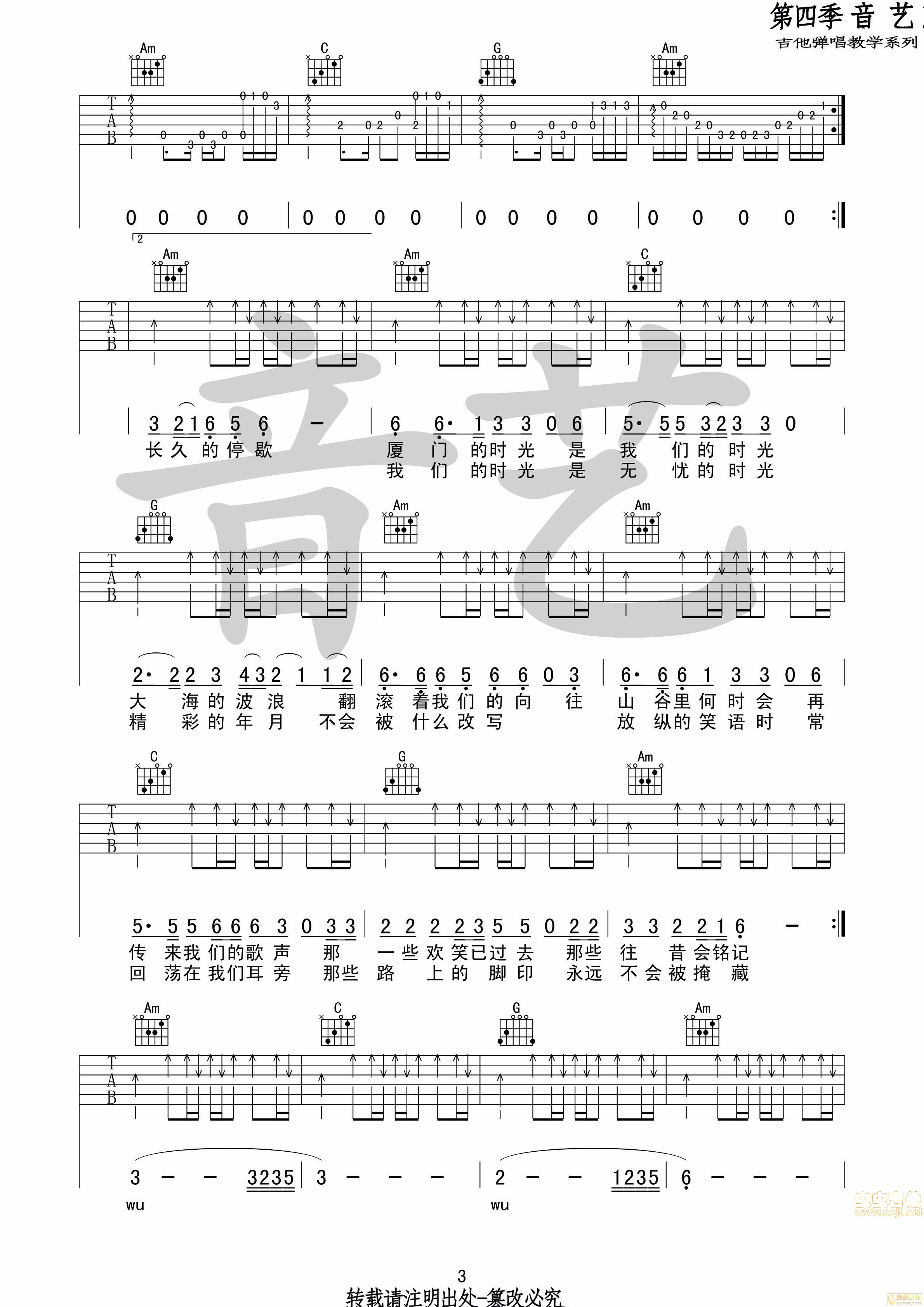 曲谱介绍: 《我们的时光》吉他弹唱谱,共有4张高清图谱。