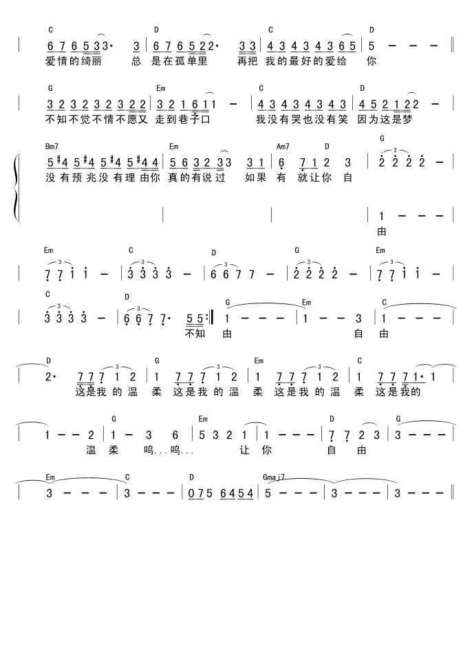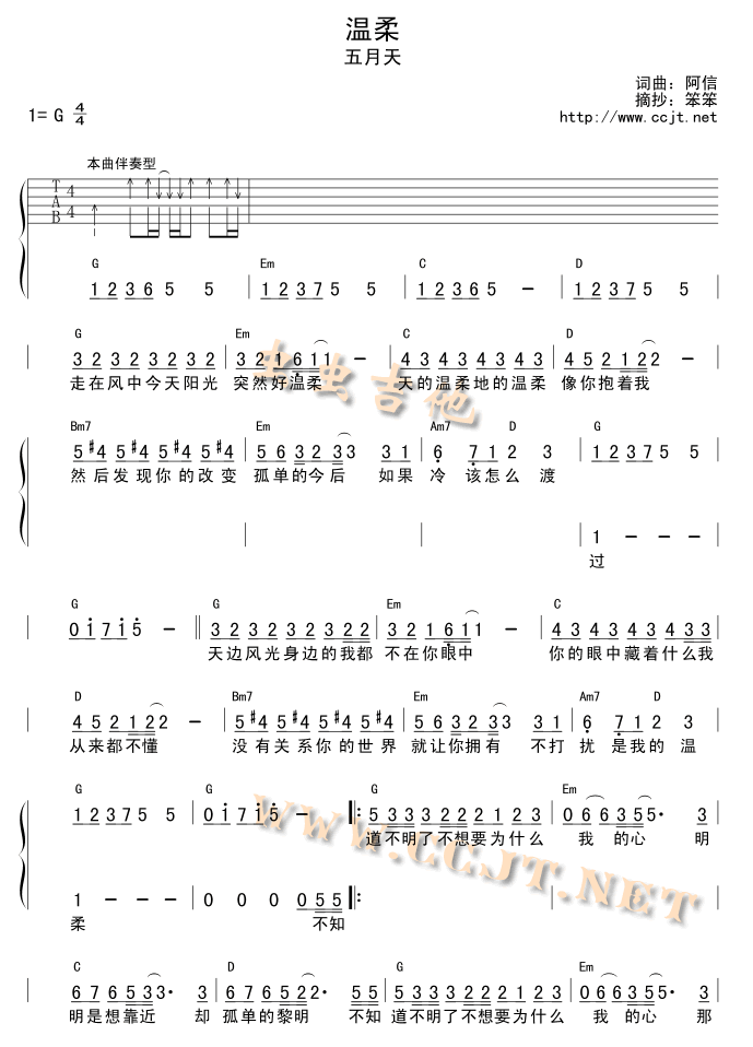 温柔吉他谱 - 吉他弹唱谱