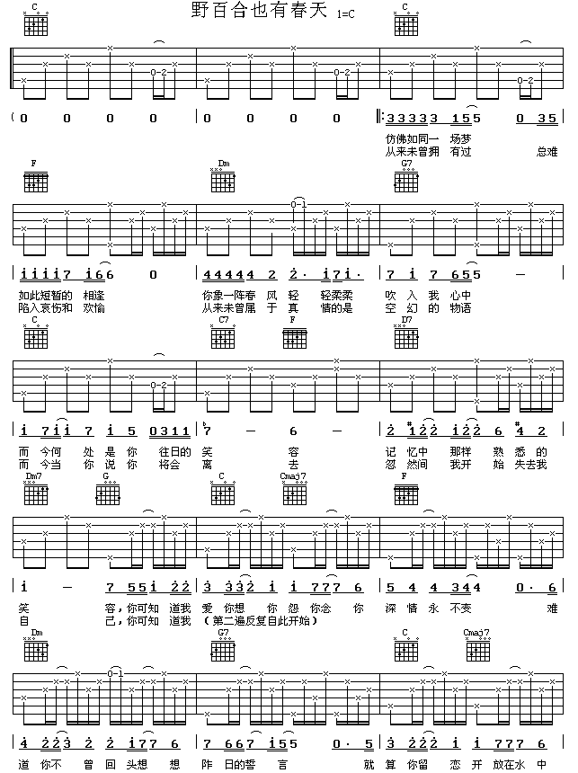 野百合也有春天(吉他谱 - 吉他弹唱谱