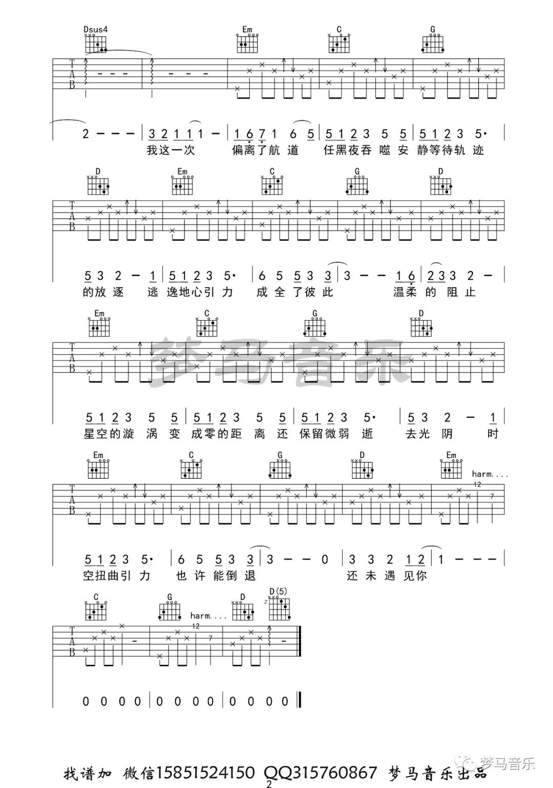 曲谱介绍: 小星星Aurora《坠落星空》吉他弹唱谱,采用G调指法编配,共有2张高清图谱,免翻页排版设计。