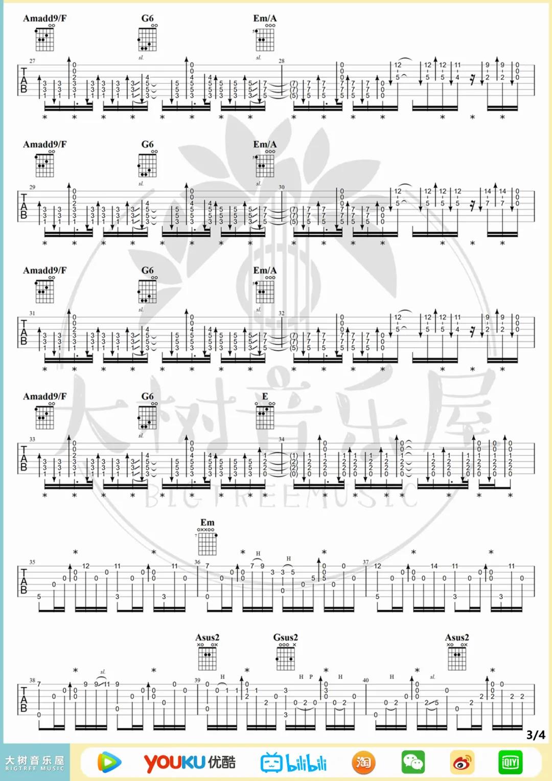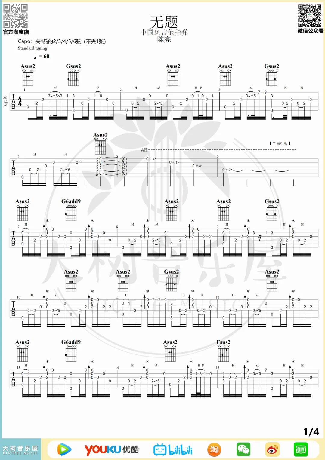 曲谱介绍: 陈亮《无题()》吉他独奏谱,采用C调指法编配,共有4张高清图谱。