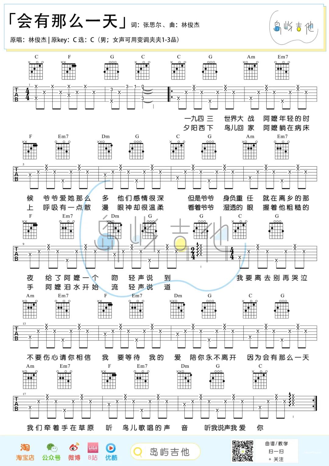 会有那么一天吉他谱 - 林俊杰 - C调吉他弹唱谱