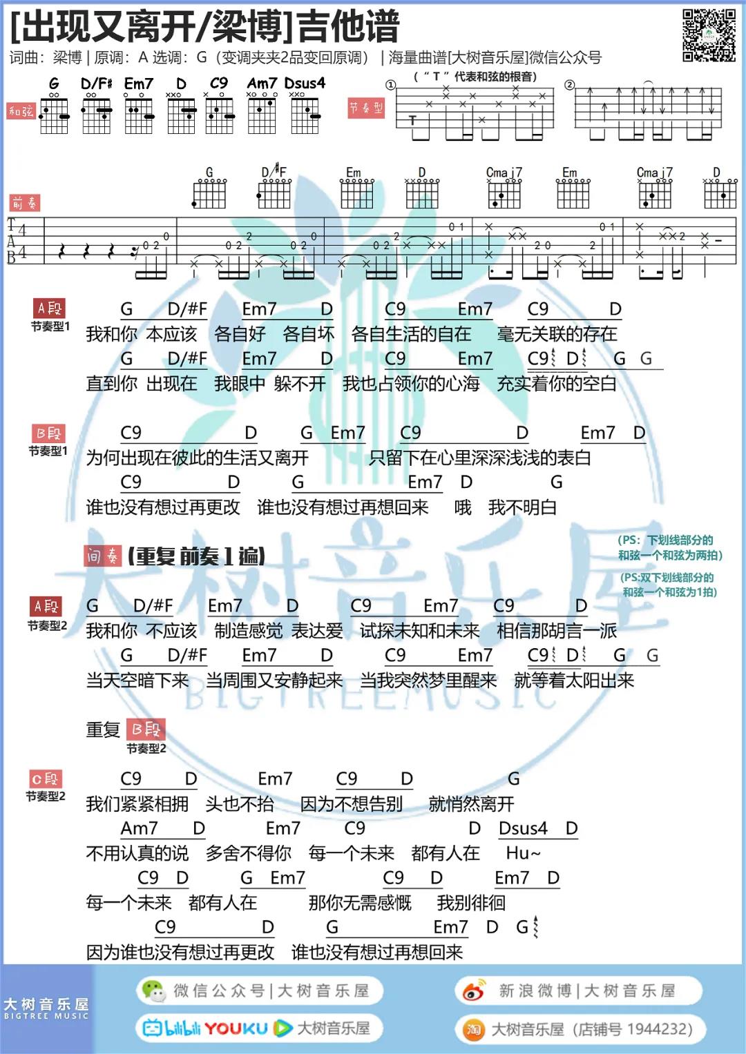 当前位置:琴谱网>吉他弹唱>出现又离开