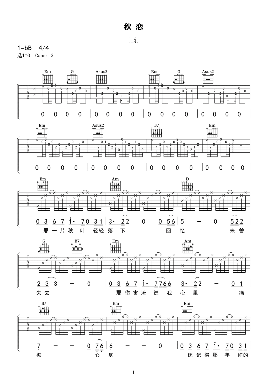 秋恋吉他谱 - 江东 - G调吉他弹唱谱 - 原版