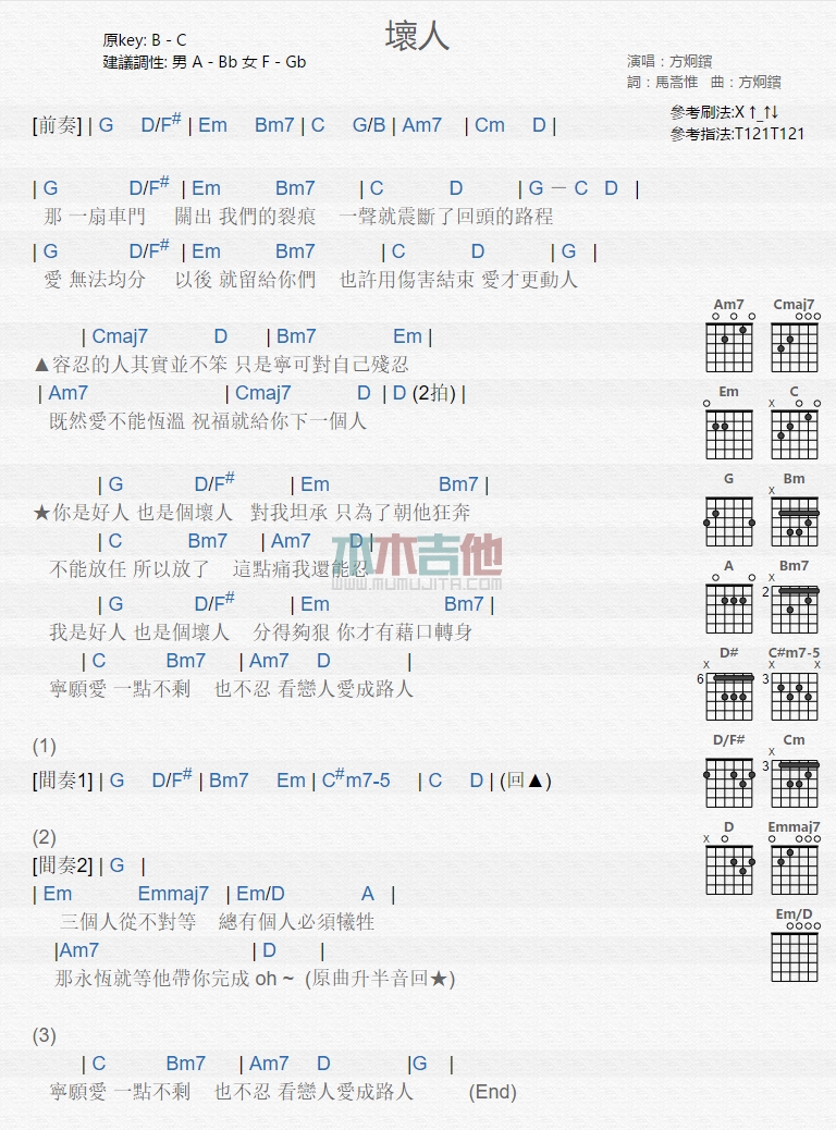 坏人吉他谱 - 方炯镔 - 吉他弹唱谱