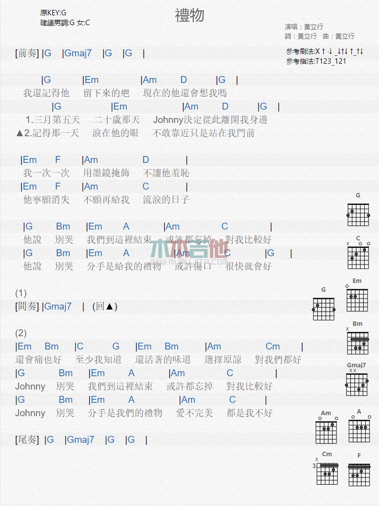 礼物吉他谱 - 黄立行 - 吉他弹唱谱