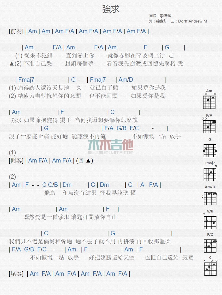 强求吉他谱 - 李佳薇 - 吉他弹唱谱