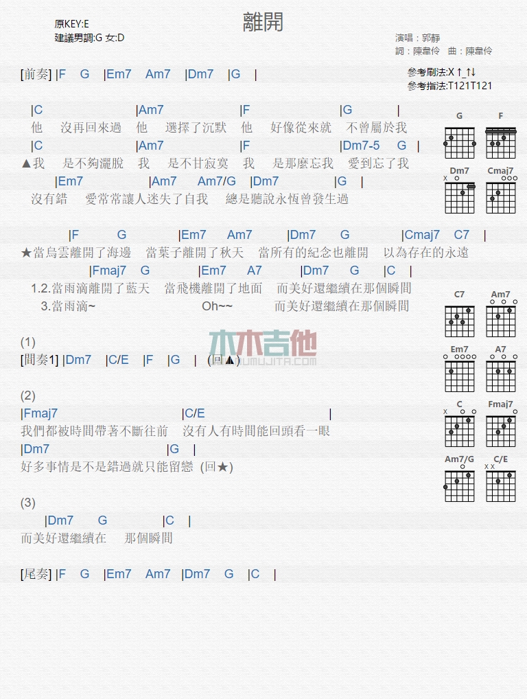 离开吉他谱 - 郭静 - 吉他弹唱谱