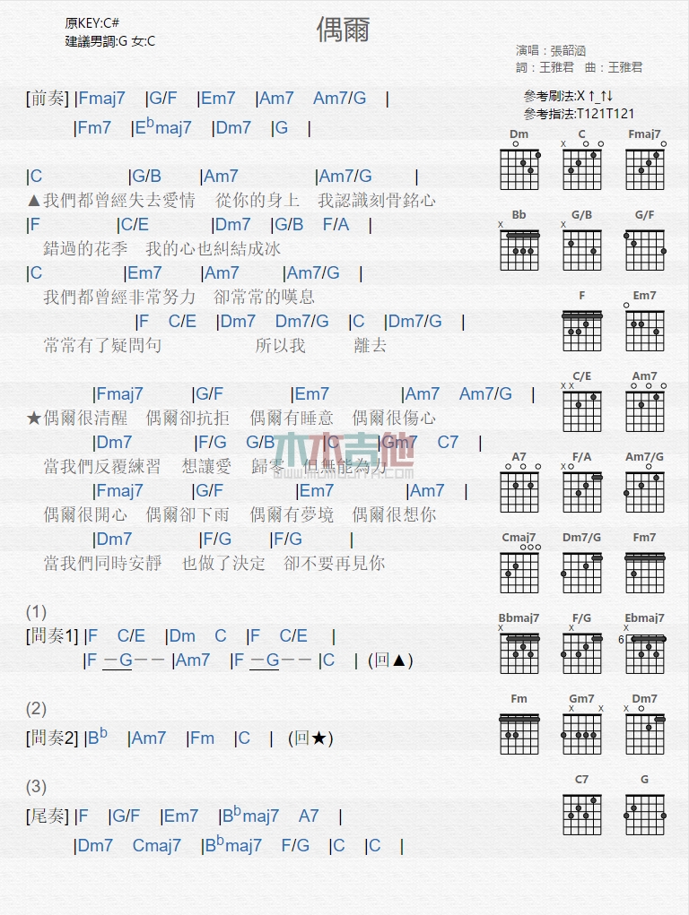 当前位置:琴谱网>吉他弹唱>偶尔