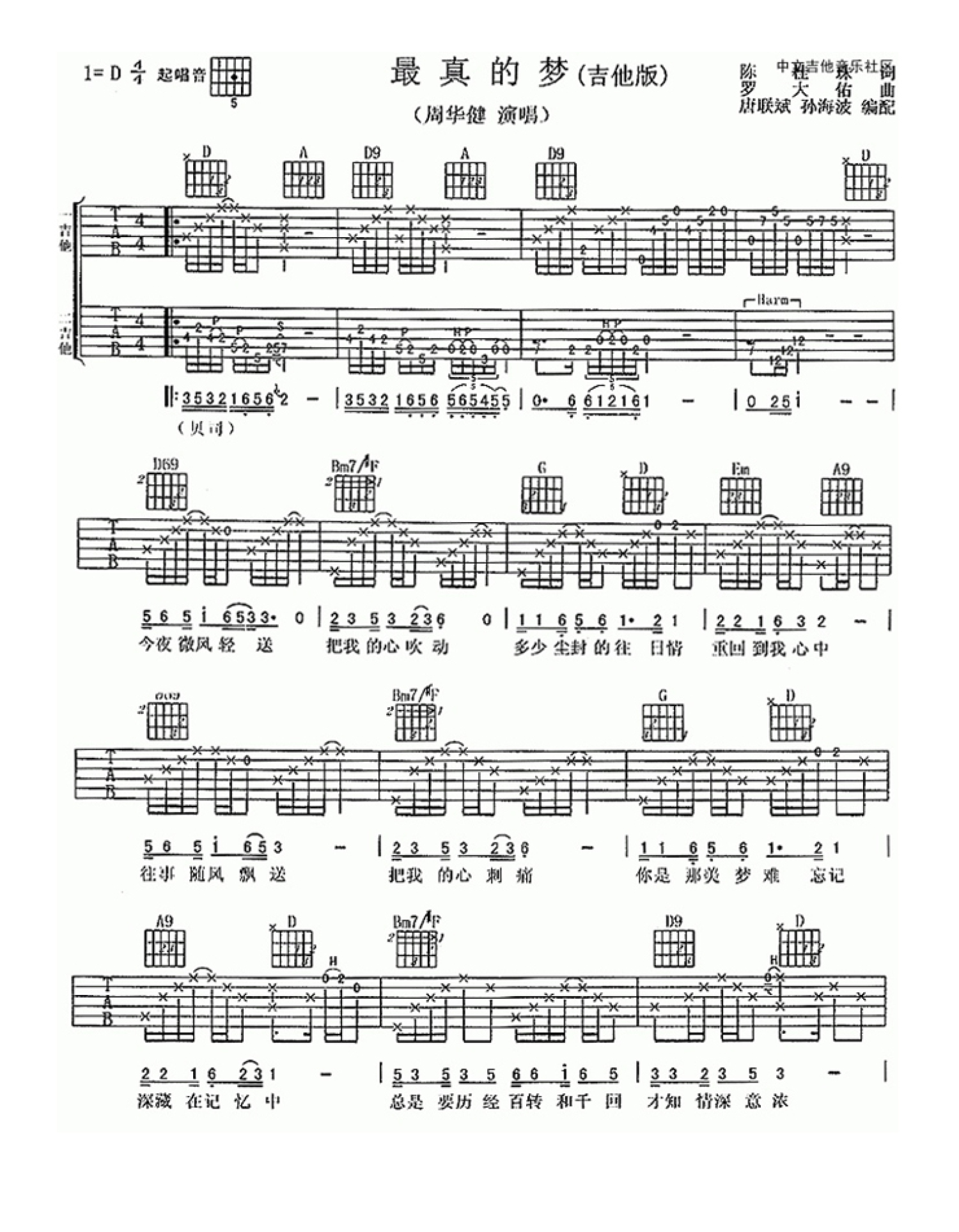 最真的梦吉他谱 - 周华健 - D调吉他弹唱谱