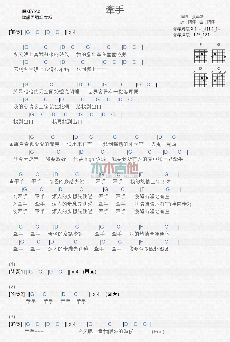 牵手吉他谱 - 张惠妹 - 吉他弹唱谱
