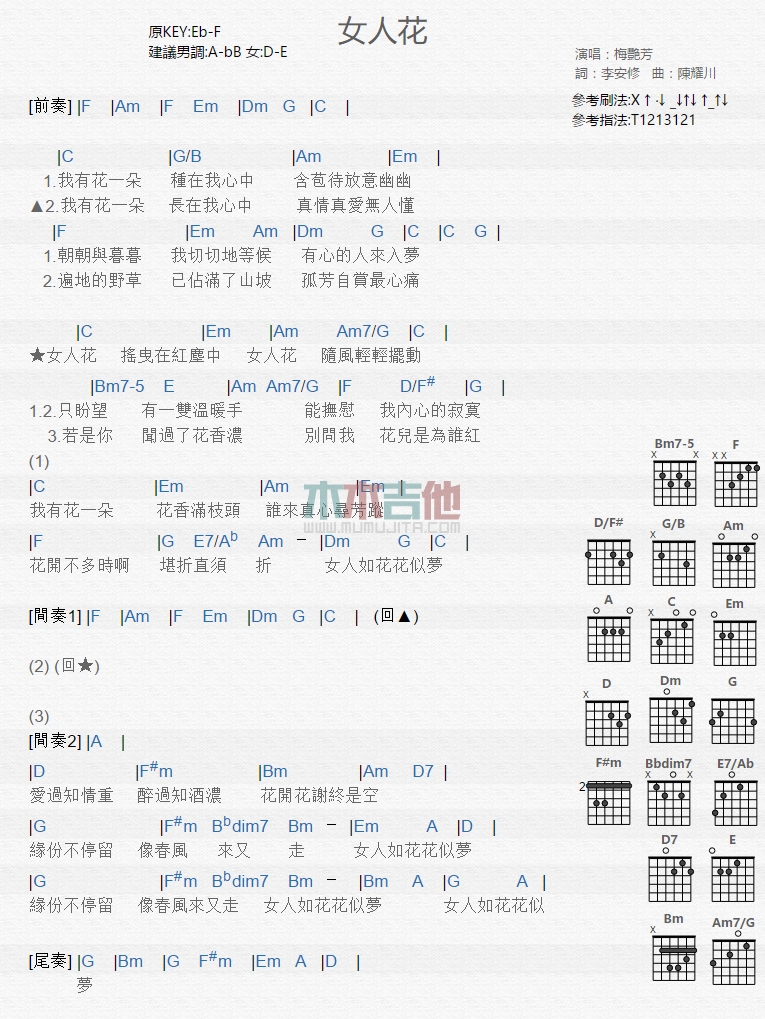 当前位置:琴谱网>吉他弹唱>女人花
