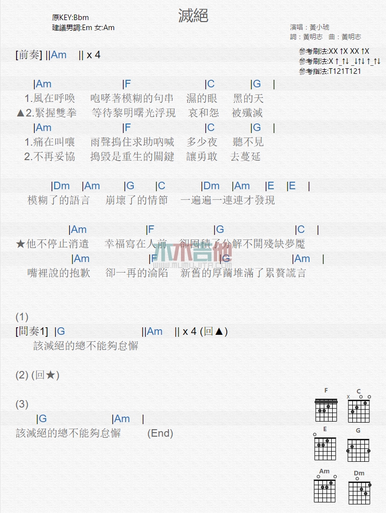 灭绝吉他谱 - 黄小琥 - 吉他弹唱谱