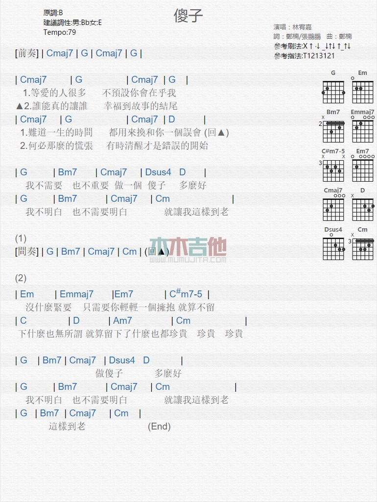 傻子吉他谱 - 林宥嘉 - 吉他弹唱谱