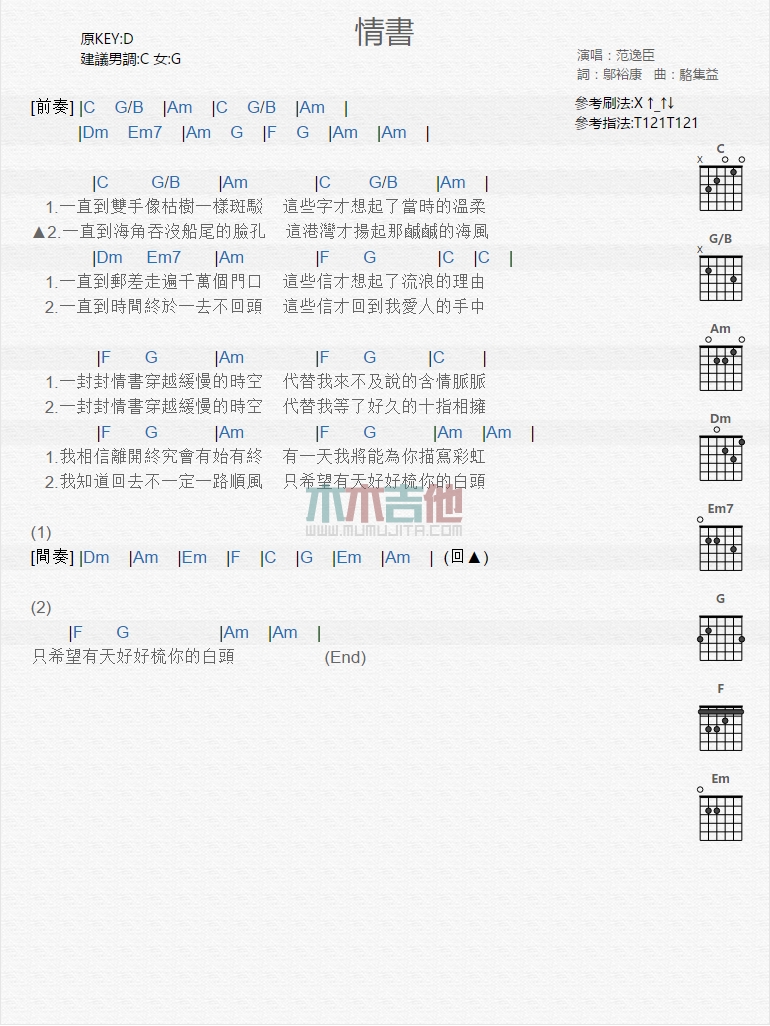 情书吉他谱 - 范逸臣 - 吉他弹唱谱