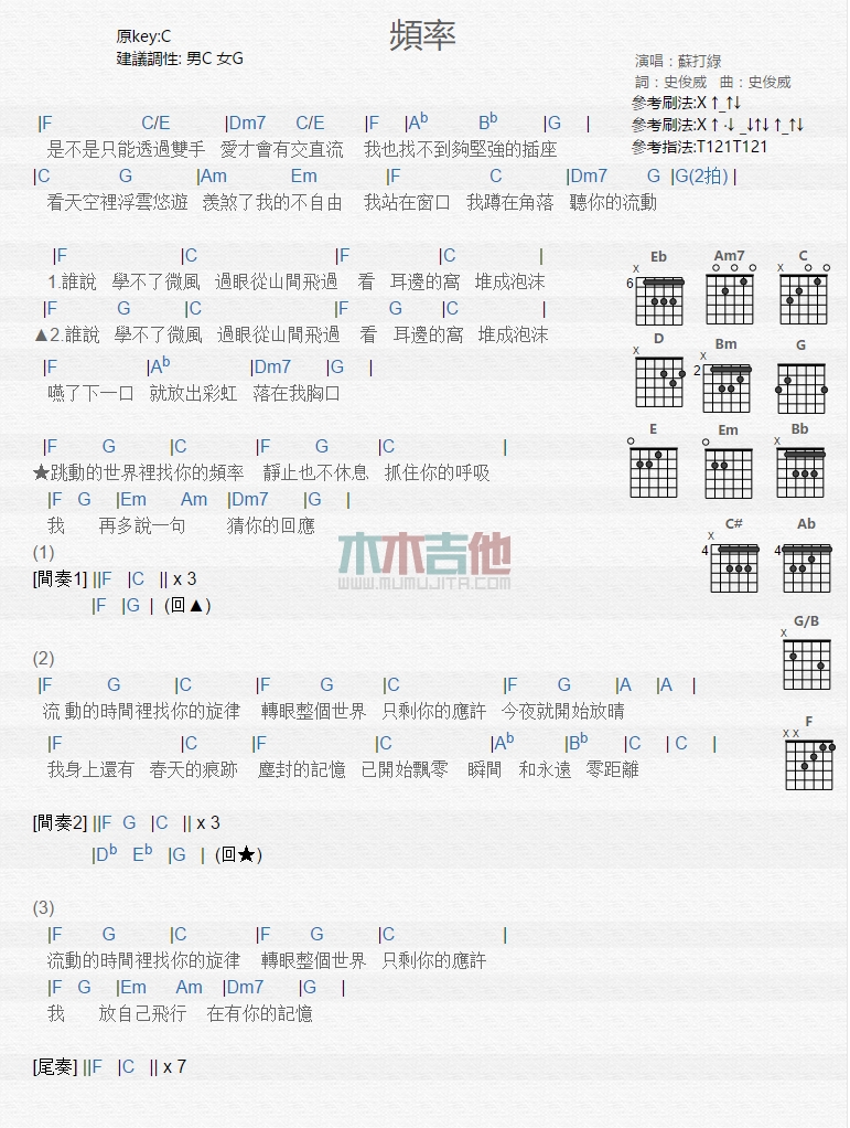 频率吉他谱 - 苏打绿 - 吉他弹唱谱