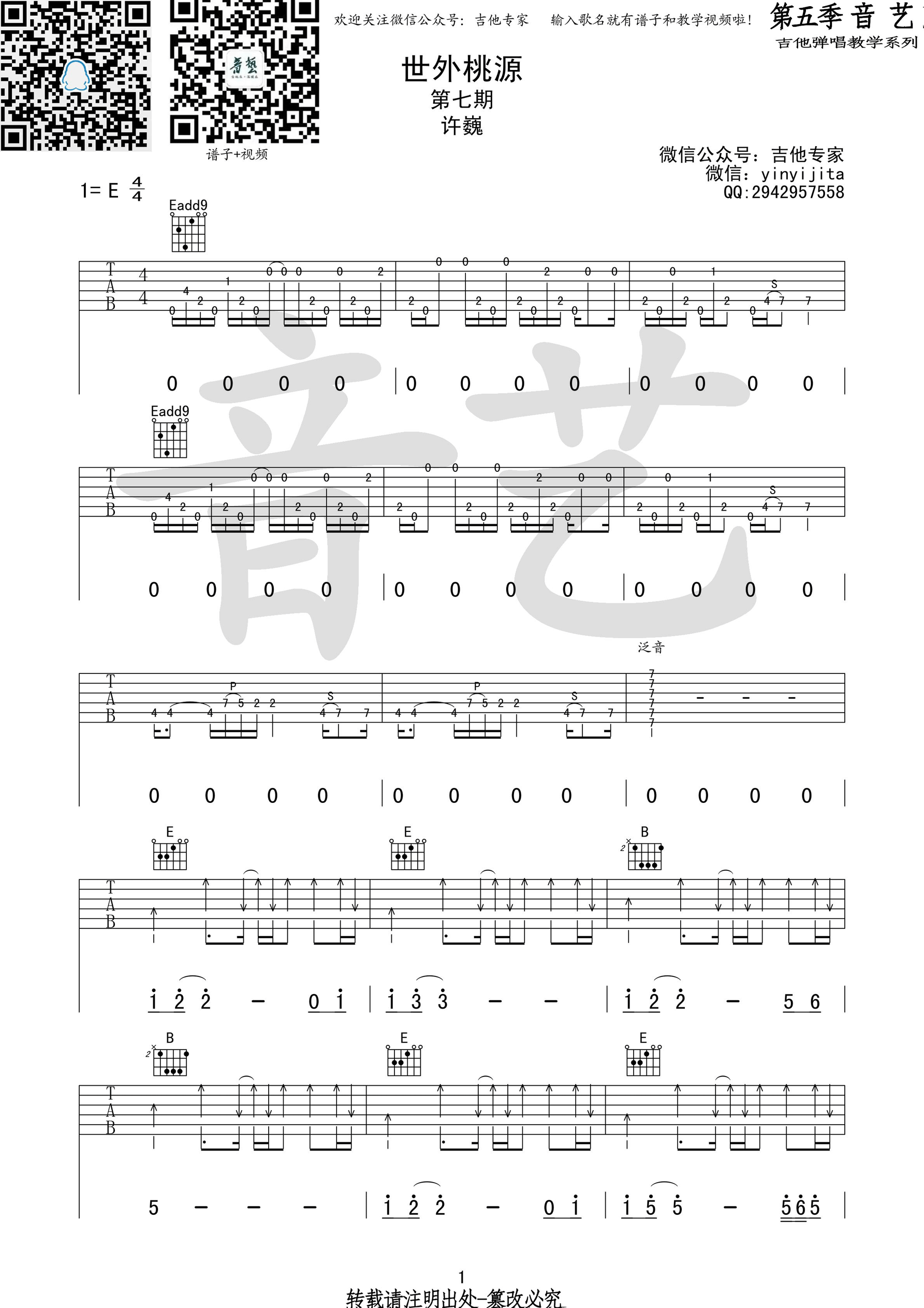 琴谱网为您精心推荐 世外桃源 高清图谱