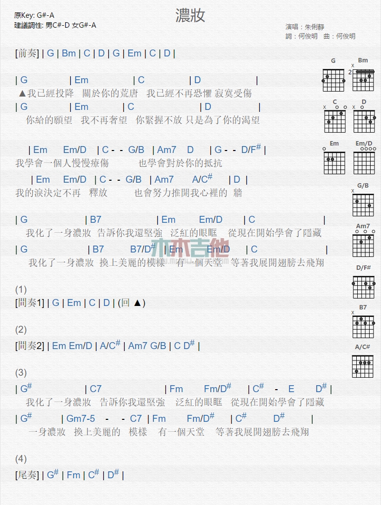 浓妆吉他谱 - 朱俐静 - 吉他弹唱谱