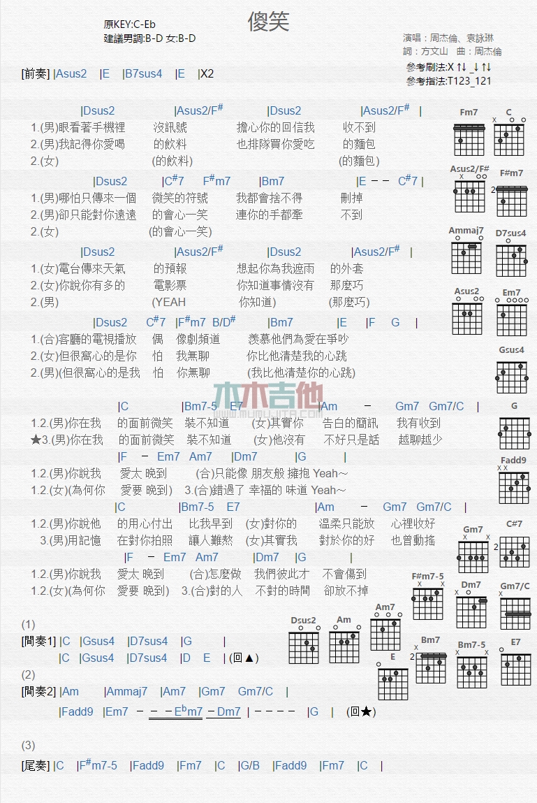 傻笑吉他谱 - 周杰伦,袁咏琳 - 吉他弹唱谱
