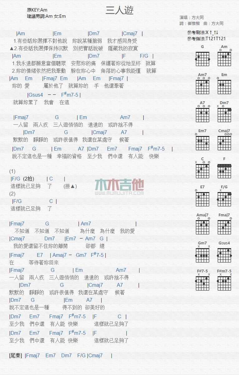三人游吉他谱 - 方大同 - 吉他弹唱谱