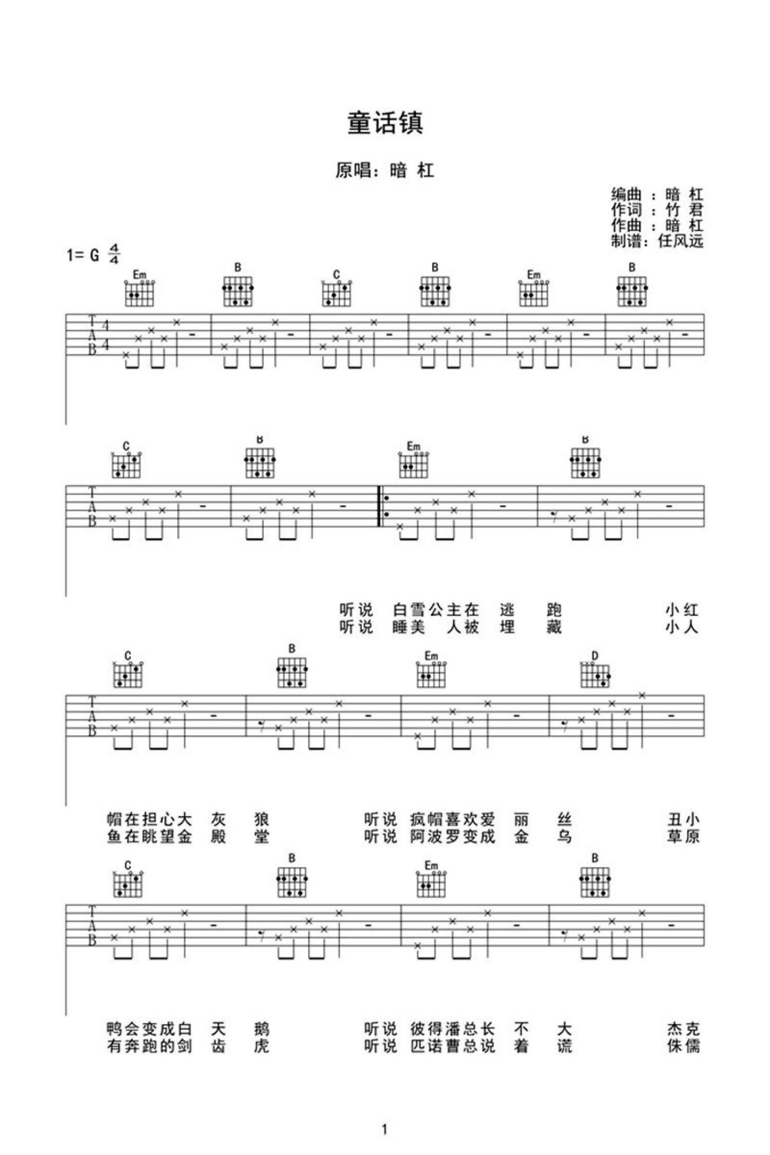 曲谱介绍: 童话镇吉他谱,陈一发演唱,原唱暗杠。陈一发儿(发姐)的首支个人单曲《童话镇》,听说白雪公主在逃跑,小红帽在担心大灰狼。梦幻童真的歌词、舒服简单的旋律,配上发姐透亮清澈的嗓音,一个美好的“童话镇”就呈现在我们脑海。《童话镇》原本由暗杠作曲并演唱,这里经斗鱼主播陈一发演绎得更为空灵、动听。