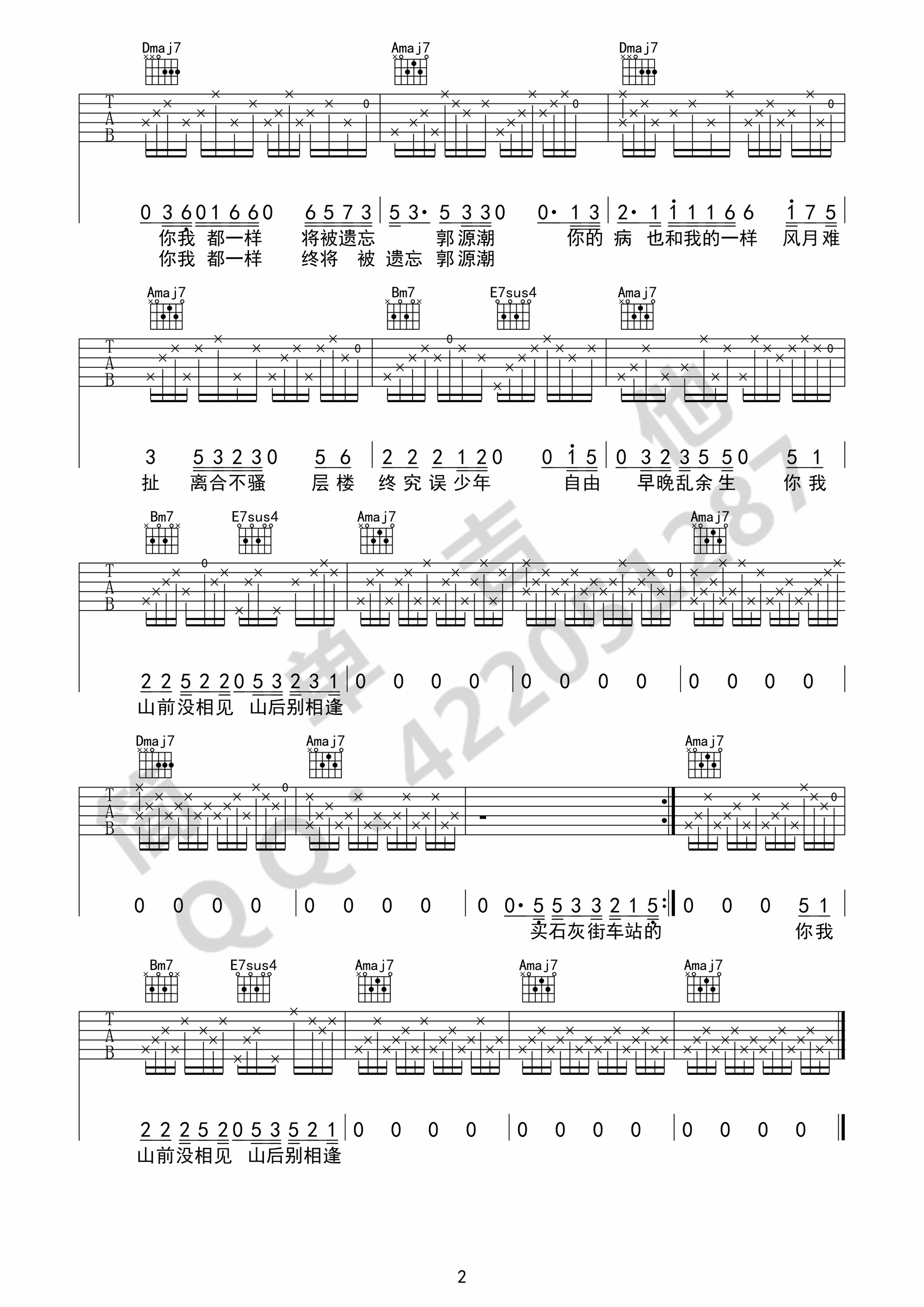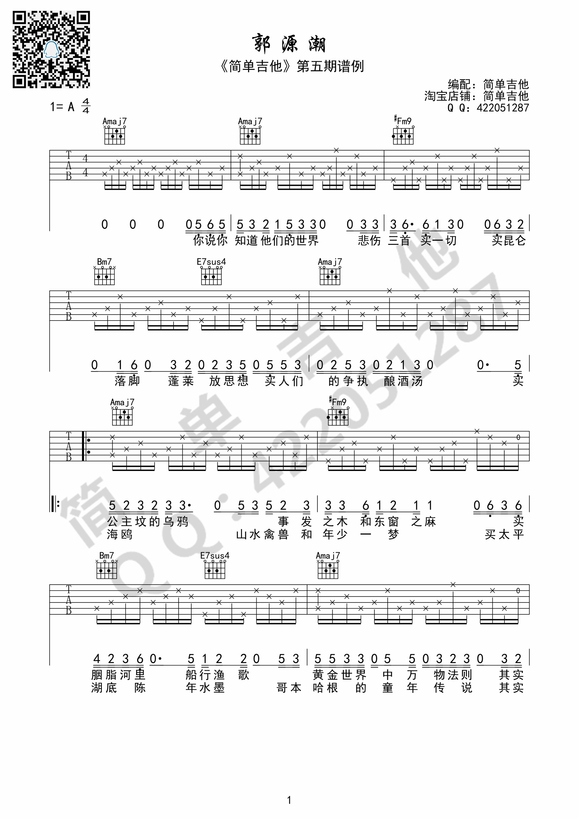 曲谱介绍: 宋冬野《郭源潮》吉他弹唱谱,共有2张高清图谱,免翻页排版设计。