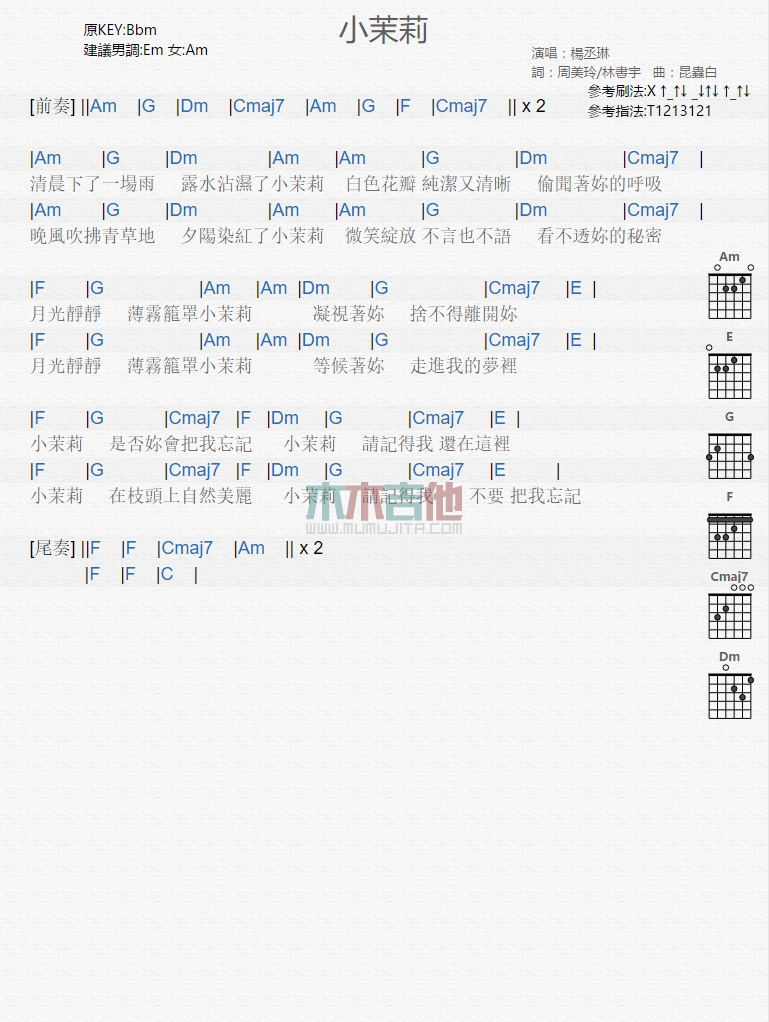 小茉莉吉他谱 - 杨丞琳 - 吉他弹唱谱