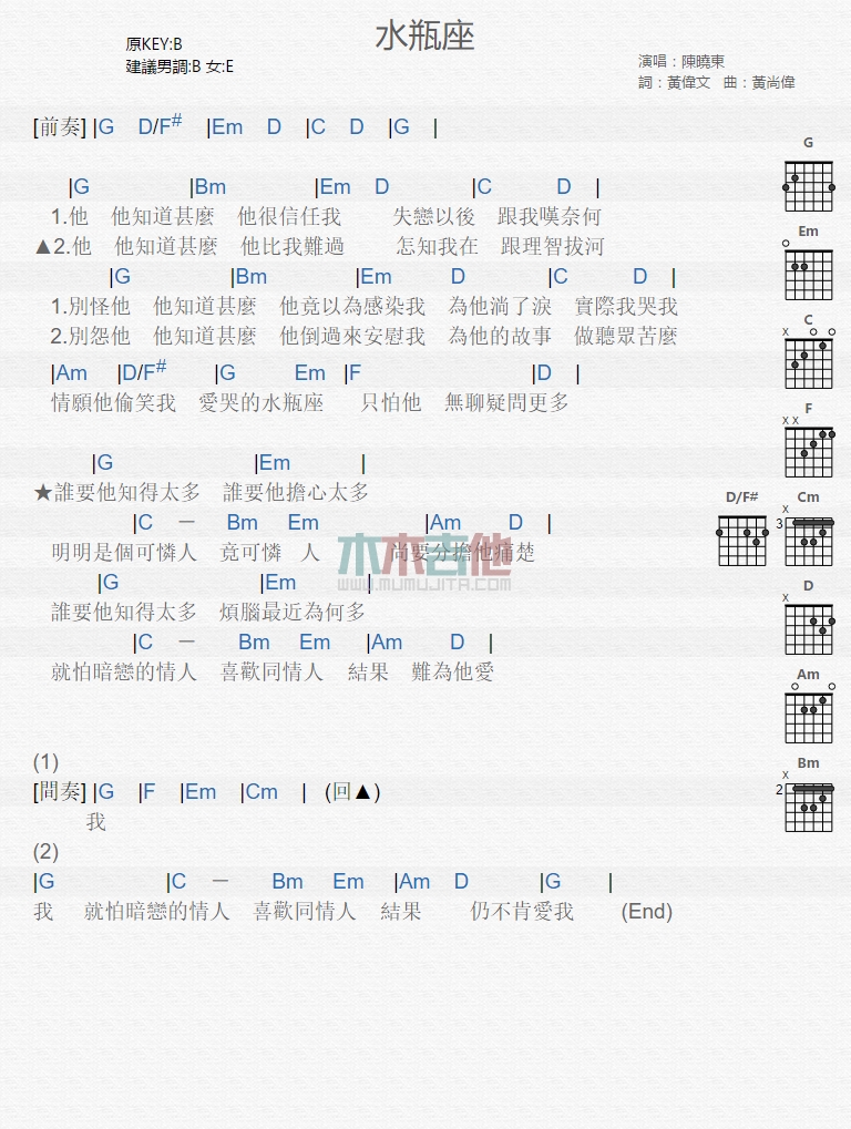 水瓶座吉他谱 - 陈晓东 - 吉他弹唱谱