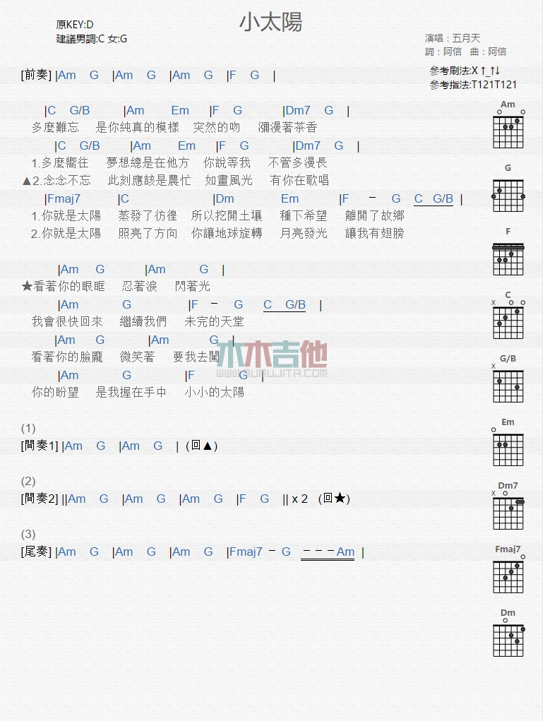 小太阳吉他谱 - 五月天 - 吉他弹唱谱