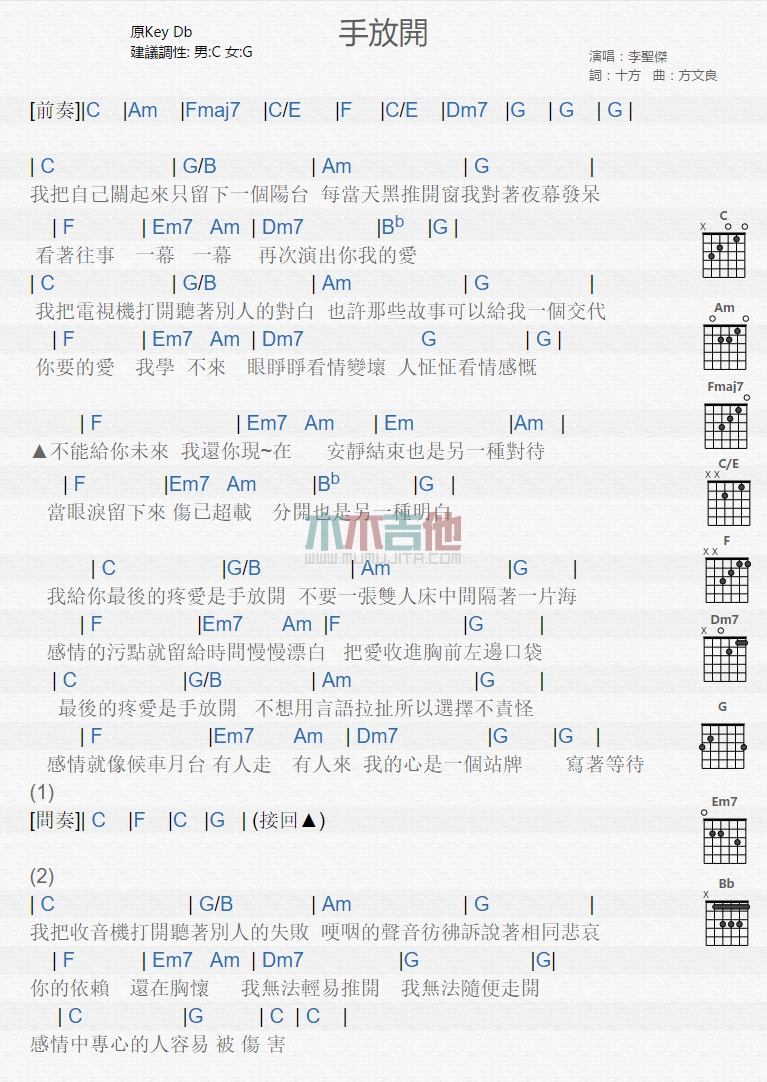 手放开吉他谱 - 李圣杰 - 吉他弹唱谱