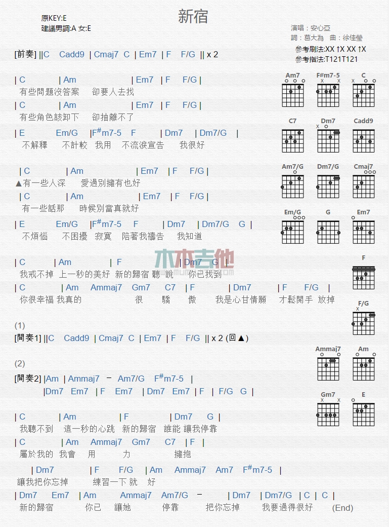 新宿吉他谱 - 安心亚 - 吉他弹唱谱