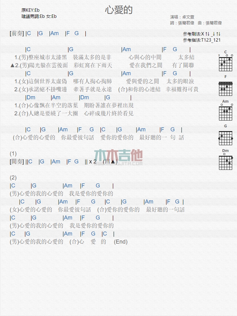 心爱的吉他谱 - 卓文萱,黄鸿升(小鬼) - 吉他弹唱谱