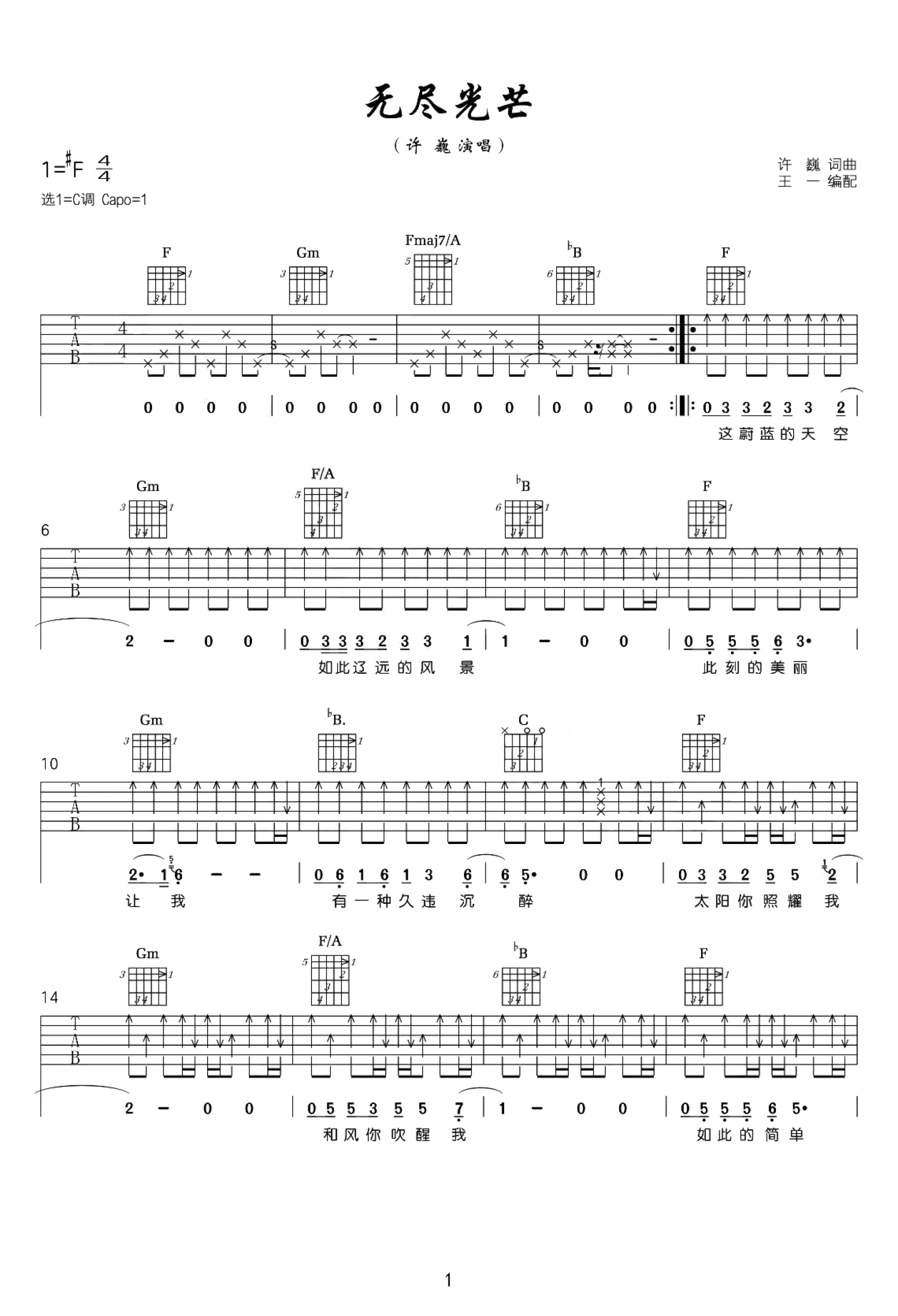 无尽光芒吉他谱 - 许巍 - F调吉他弹唱谱