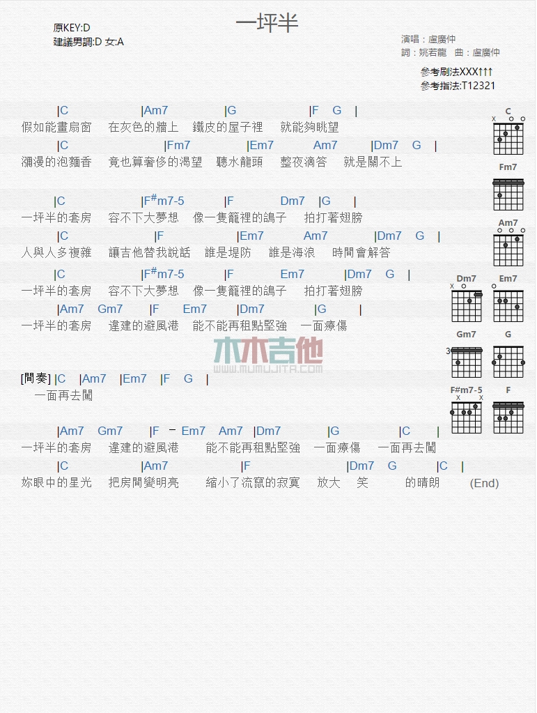 一坪半吉他谱 - 卢广仲 - 吉他弹唱谱