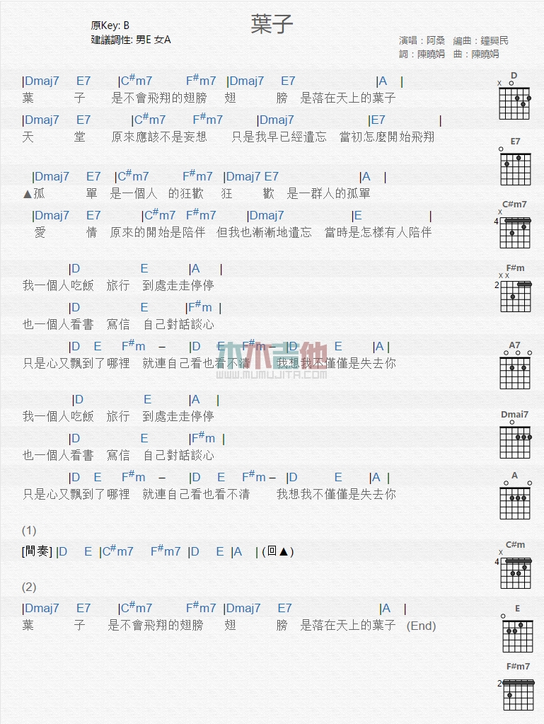 当前位置:琴谱网>吉他弹唱>叶子