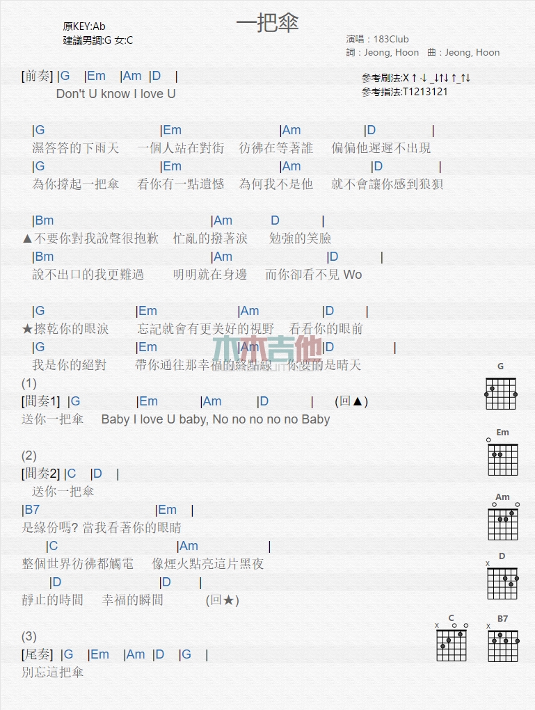 一把伞吉他谱 - 183Club - 吉他弹唱谱