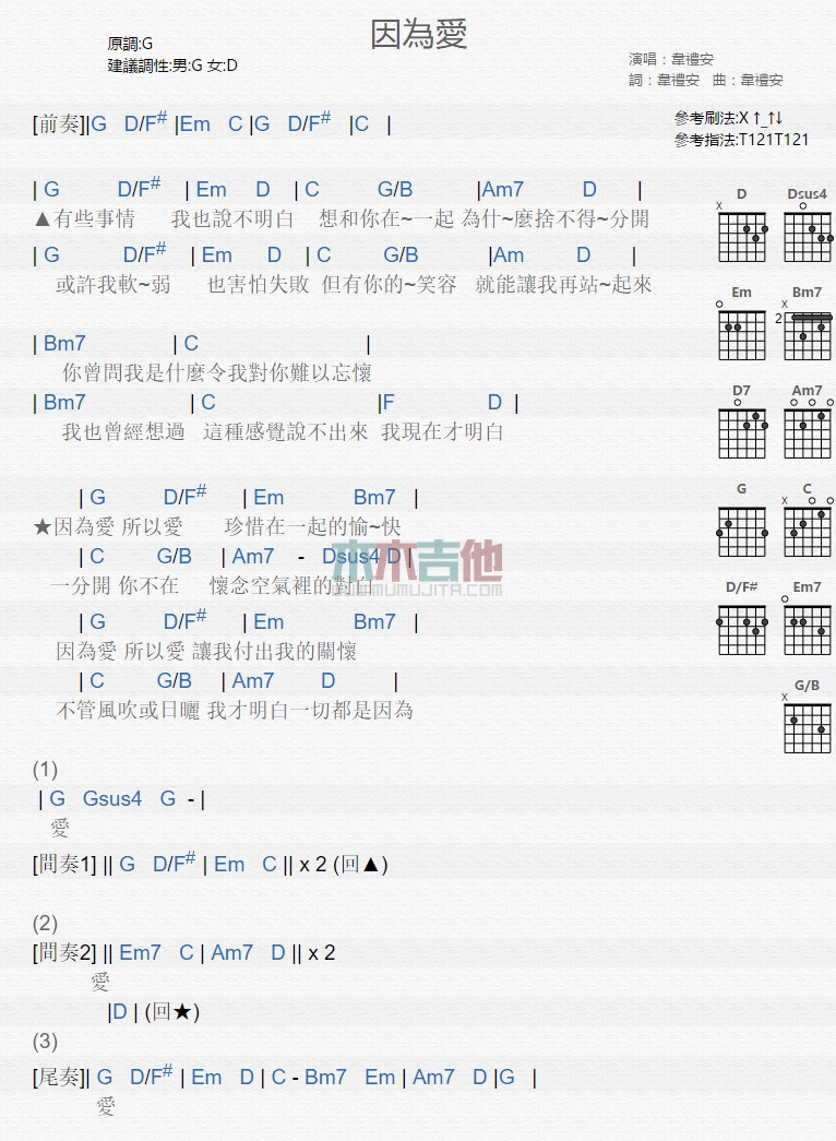 因为爱吉他谱 - 韦礼安 - 吉他弹唱谱