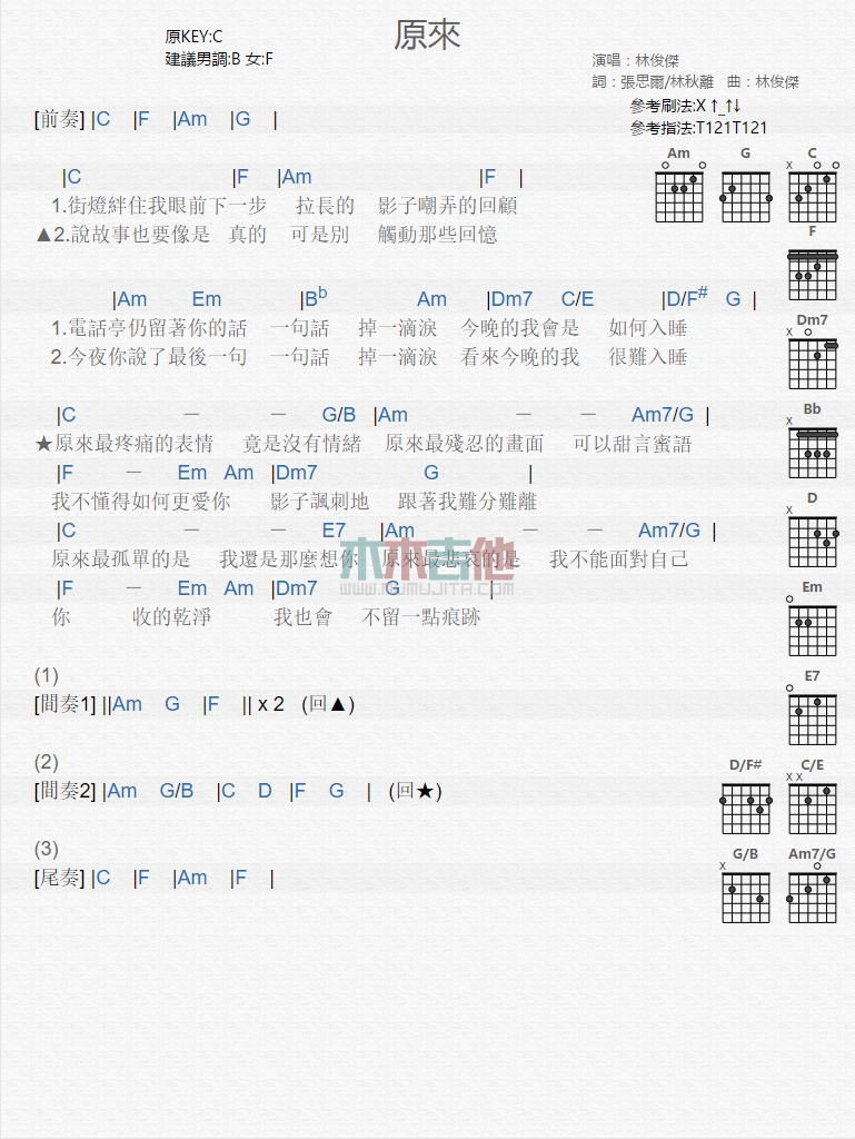 原来吉他谱 - 林俊杰 - 吉他弹唱谱