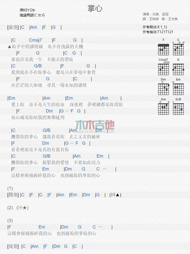掌心吉他谱 - 无印良品 - 吉他弹唱谱