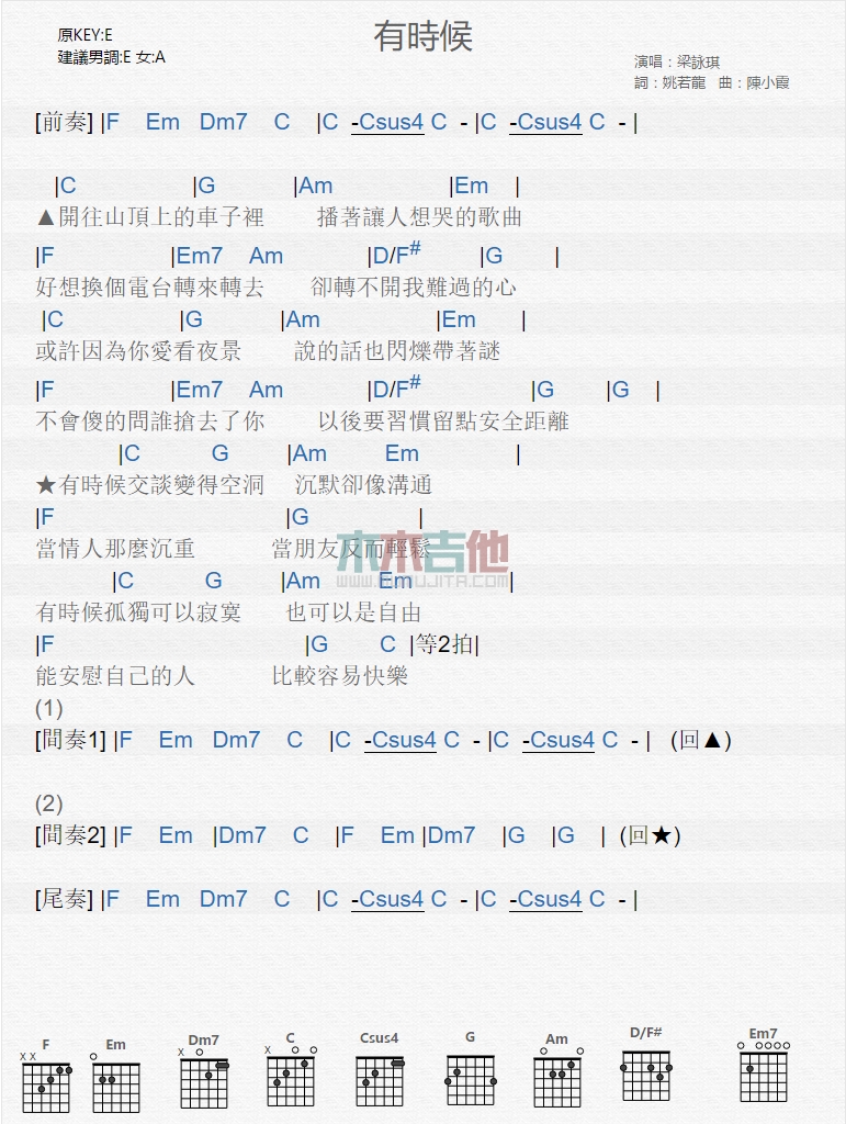 有时候吉他谱 - 梁咏琪 - 吉他弹唱谱