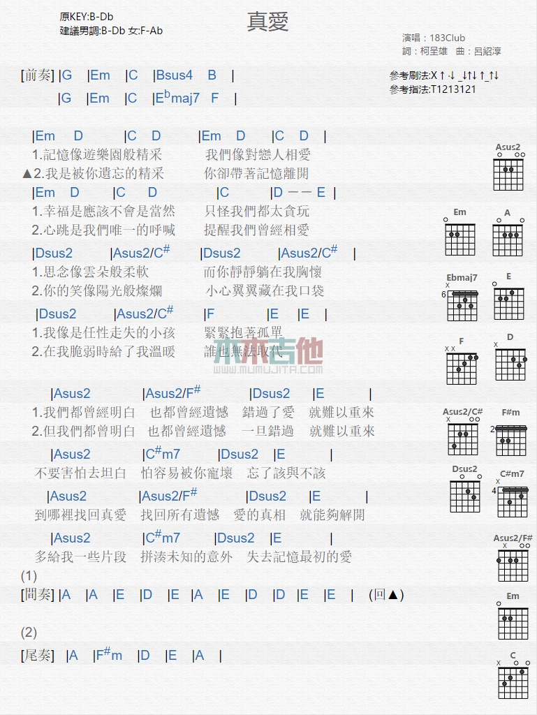 真爱吉他谱 - 183Club - 吉他弹唱谱