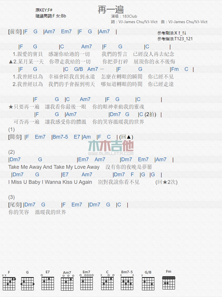 再一遍吉他谱 - 183Club - 吉他弹唱谱