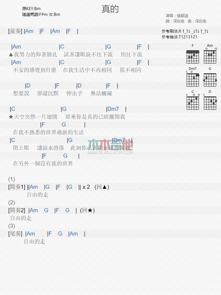 当前位置:琴谱网>吉他弹唱>真的